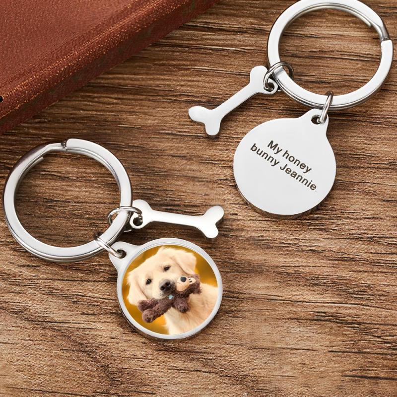 Un porte-clés individuel avec gravure d'image, la caractéristique la plus importante de ce porte-clés est la forme unique de ses os de chien, ce porte-clés peut être adapté et gravé sur l'image ronde. Vous pouvez télécharger une photo de vous et de votre animal de compagnie, puis graver ce que vous voulez dire derrière le cercle. Ce joli porte-clés est parfait à emporter avec vous. Si vous ne savez pas quoi offrir à vos amis pour Noël, croyez-moi, ce porte-clés sera très flatteur.