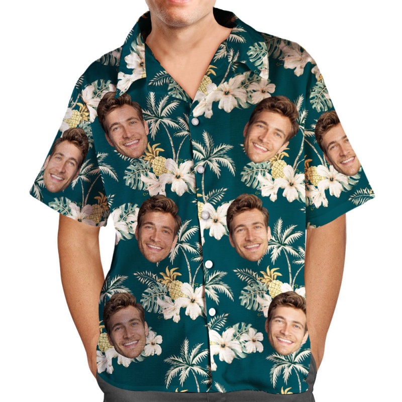 Photo Personnalisée Funky Vintage Chemise Hawaïenne Décontractée Boutonnée À Manches Courtes Unisexe