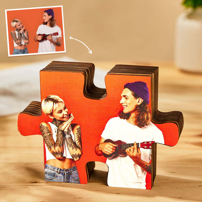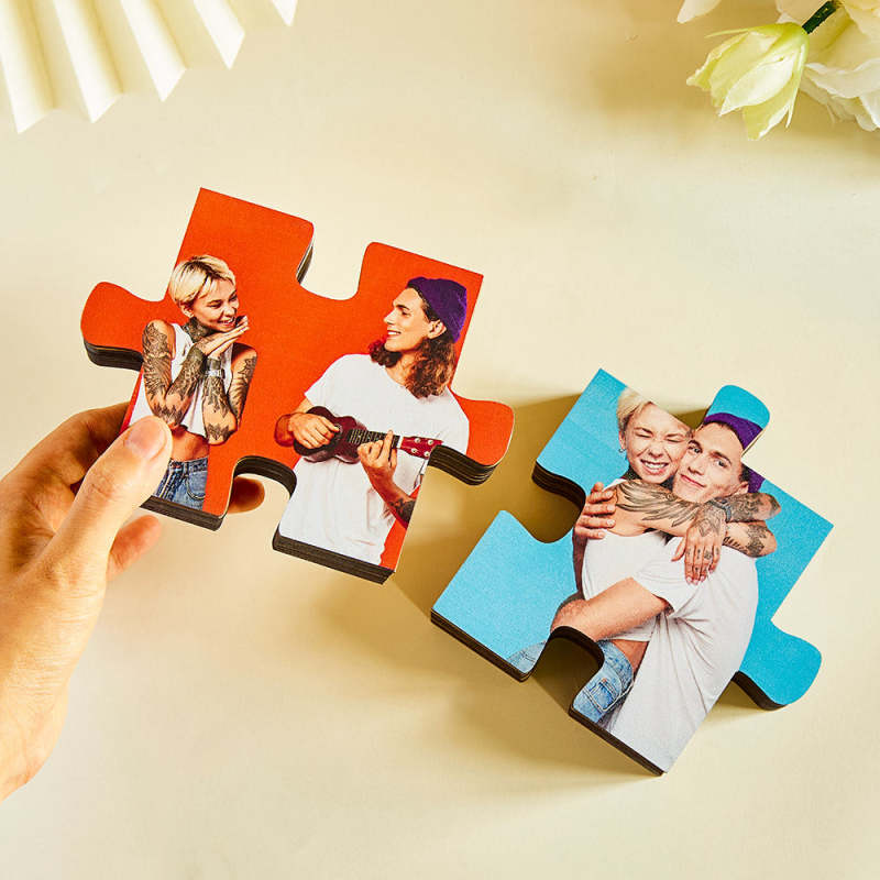 Un puzzle autonome, la photo sur des puzzles en bois offre une manière créative et unique d'afficher vos photos. Chaque panneau a une finition ultra-brillante qui magnifie les couleurs et les détails donnant à votre image un coup de poing supplémentaire ! Ce joli puzzle photo en bois sera une excellente décoration dans n'importe quelle maison, en particulier sur la table. Une décoration délicate comme anniversaire pour couple, ami, parents, mariage etc.