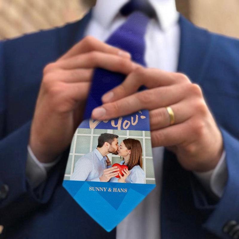 Cravate Personnalisée En Photo "Je T'aime" Cadeaux Pour Lui Bleu