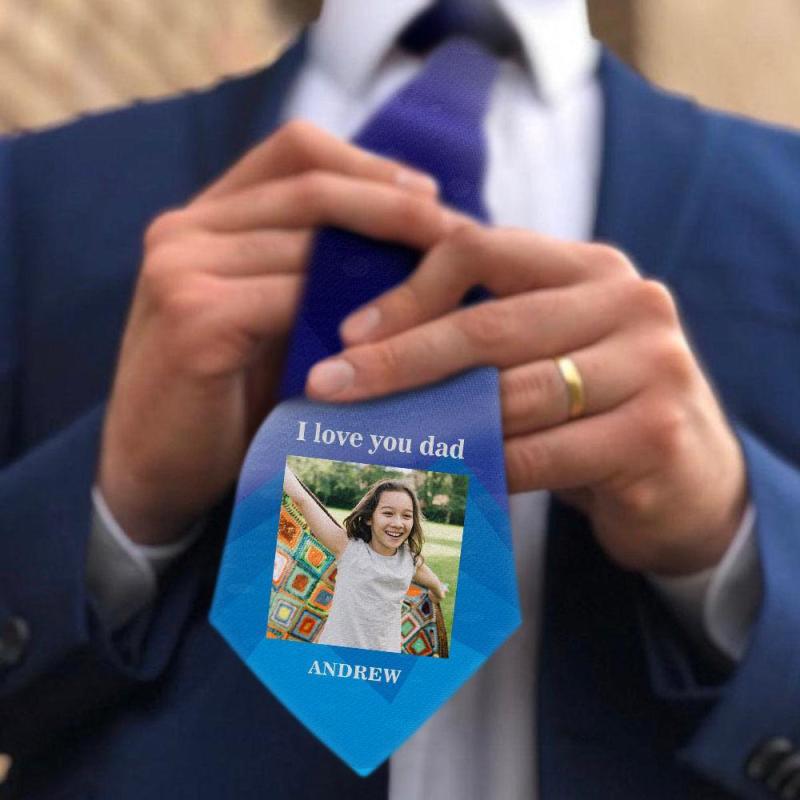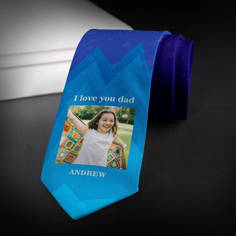 Cravate Personnalisée En Photo Cadeaux Uniques Pour Père Bleu