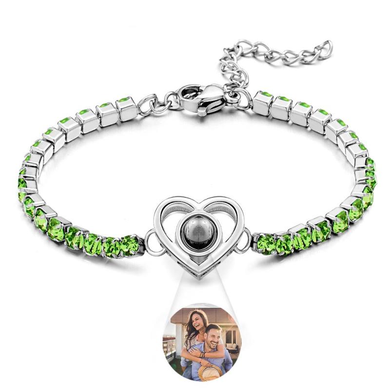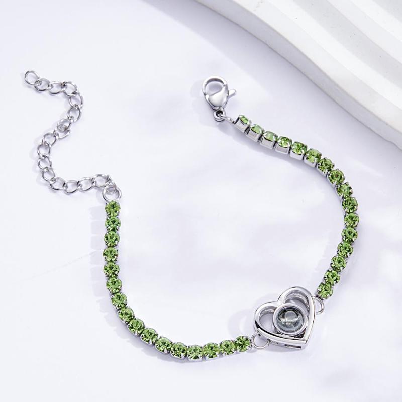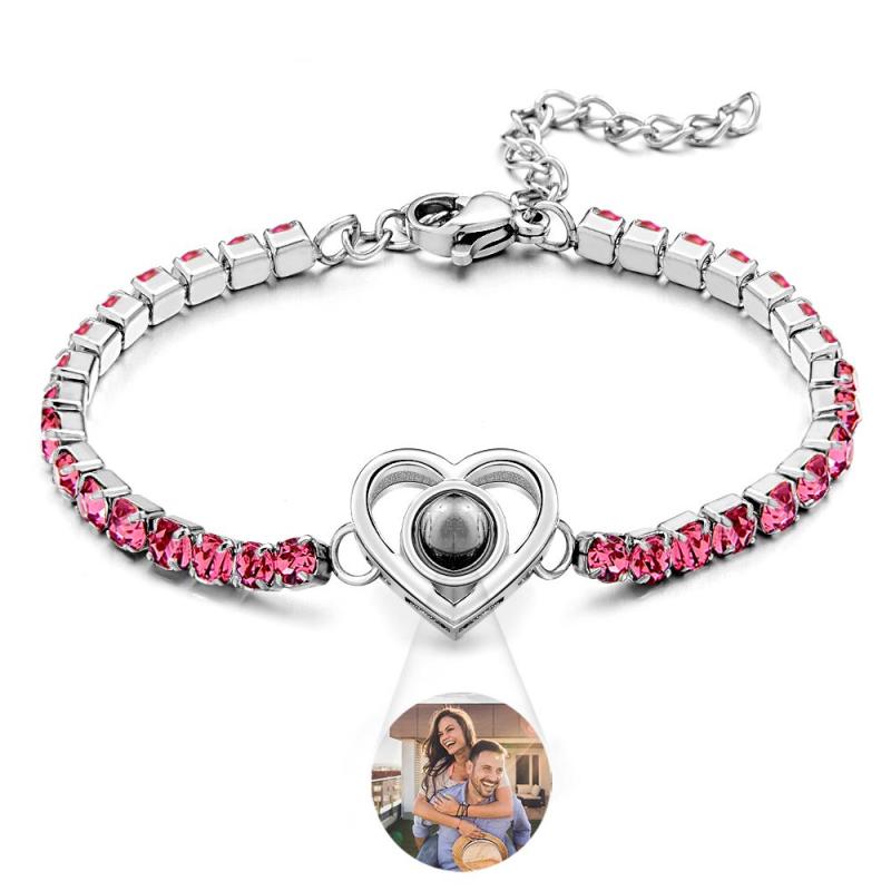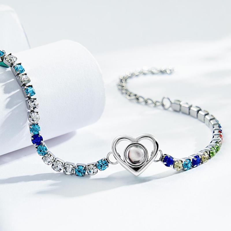 Bracelet De Projection De Photo Personnalisé, À La Mode, Tous Les Diamants, En Forme De Cœur, À Breloques, Cadeaux Pour Elle