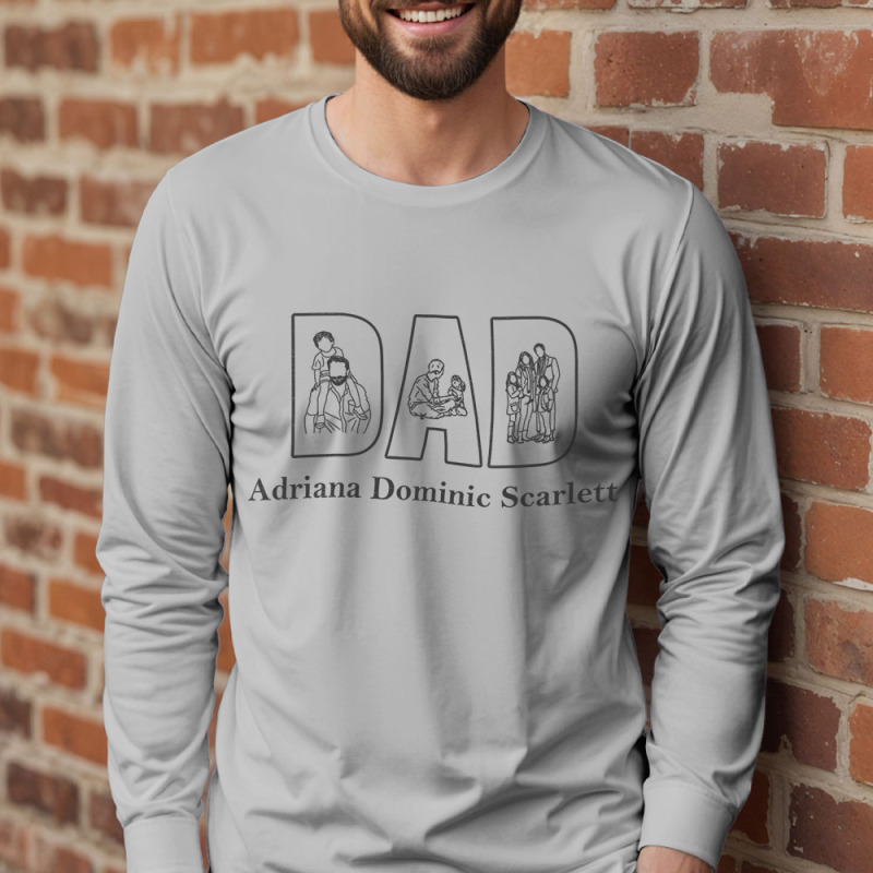 Célébrez la fête des Pères avec ce sweat-shirt photo personnalisé unique, orné de lignes dessinées à la main. Fabriqué en polyester résistant et imprimé par transfert thermique de haute qualité, il constitue un cadeau chaleureux pour papa. Idéal pour immortaliser vos précieux souvenirs et vos moments privilégiés.