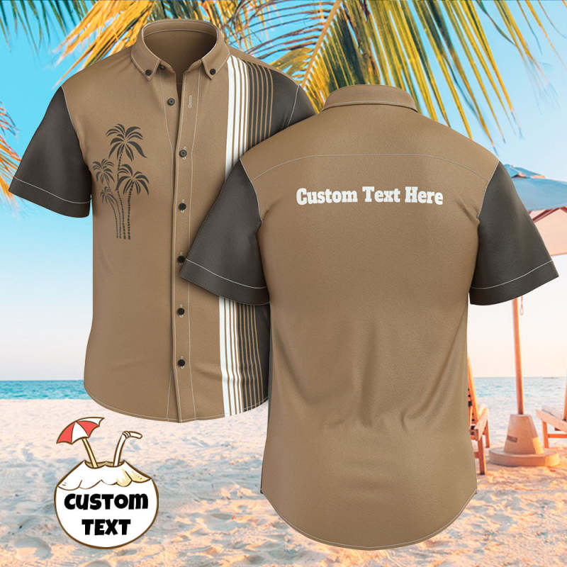 Texte Personnalisé Chemises Hawaïennes Vintage Pour Hommes Chemise De Bowling Rayée Imprimée Palmier Décontractée Pour Hommes