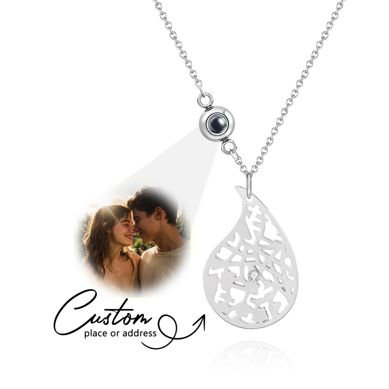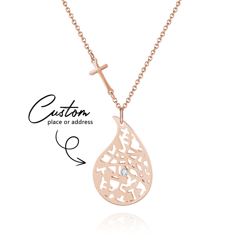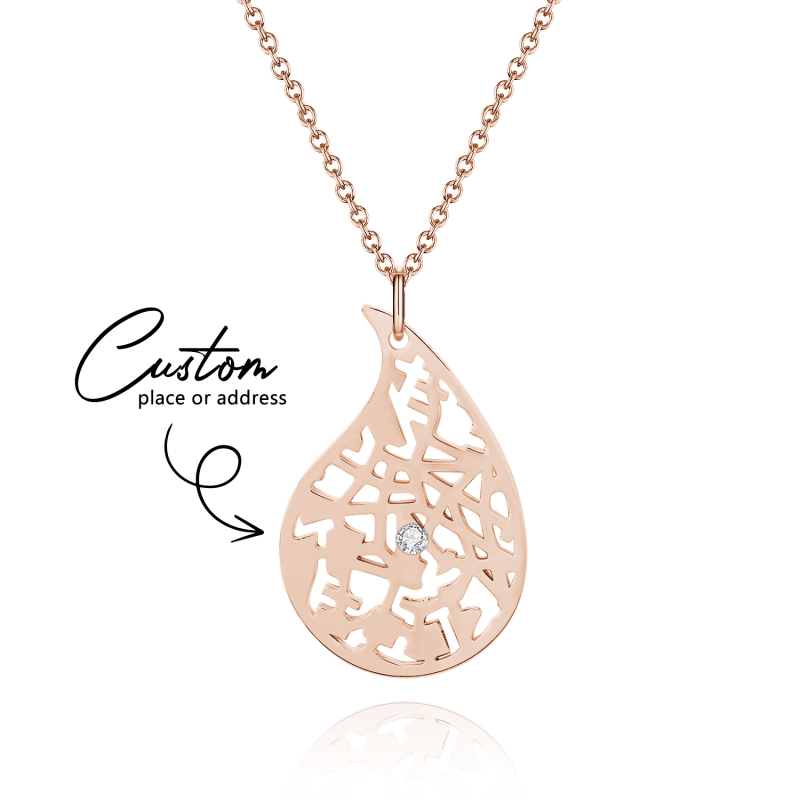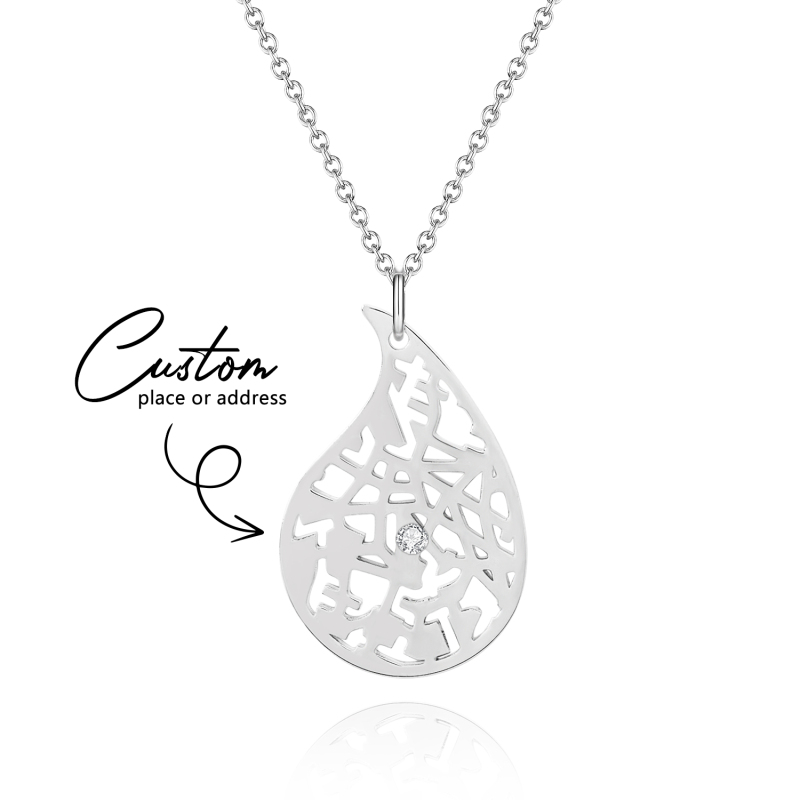 Immortalisez vos souvenirs les plus précieux avec notre collier carte personnalisée. Ce bijou romantique dessine le contour d'une carte personnalisée à l'intérieur d'un cœur, transformant vos moments préférés en une œuvre d'art à porter. Choisissez parmi plusieurs styles de chaîne – simple, croix ou perle en relief – pour s'accorder à son style, et ajoutez une touche d'éclat avec des pierres précieuses (en option) pour une brillance romantique supplémentaire. Parfait comme cadeau d'anniversaire ou comme une délicate attention, ce collier est un bijou intemporel qu'elle chérira.
