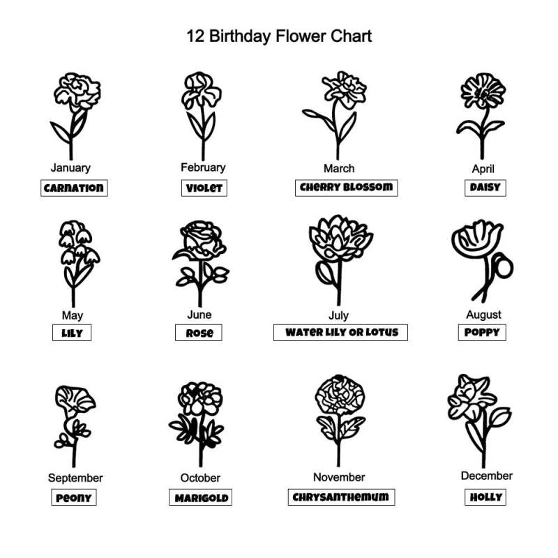 Breloque Fleur De Naissance À Graver, Joli Coeur, Cadeau D'anniversaire