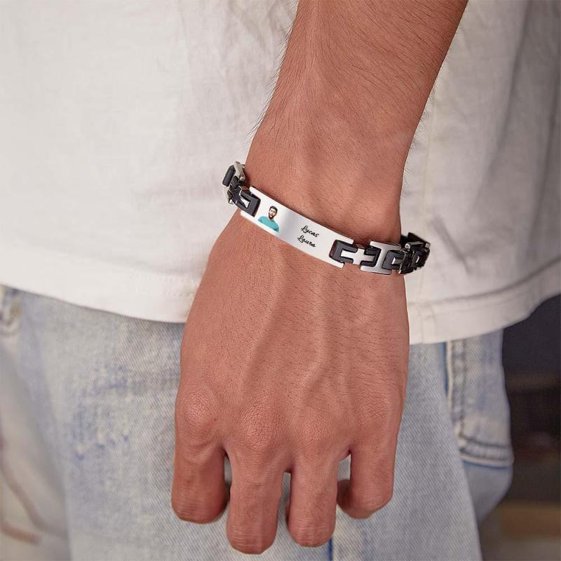 Présentation du bracelet pour homme - un bijou élégant et masculin parfait pour papas de tous âges. Avec son design de bracelet gravé et son bracelet nom personnalisable, ce bracelet est un cadeau attentionné et unique que tout père chérira.
