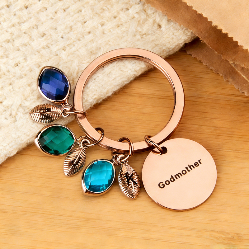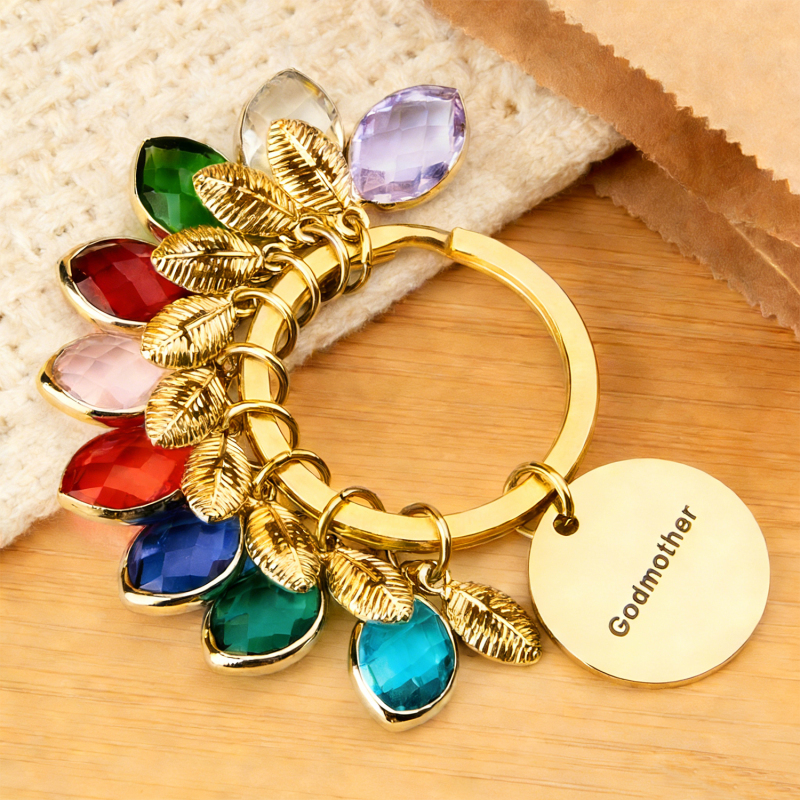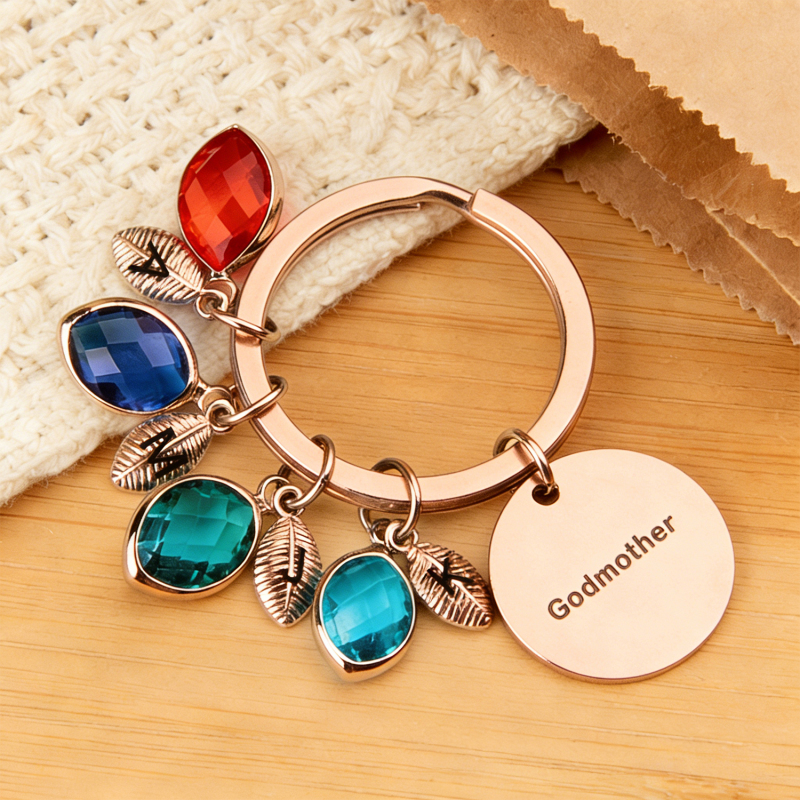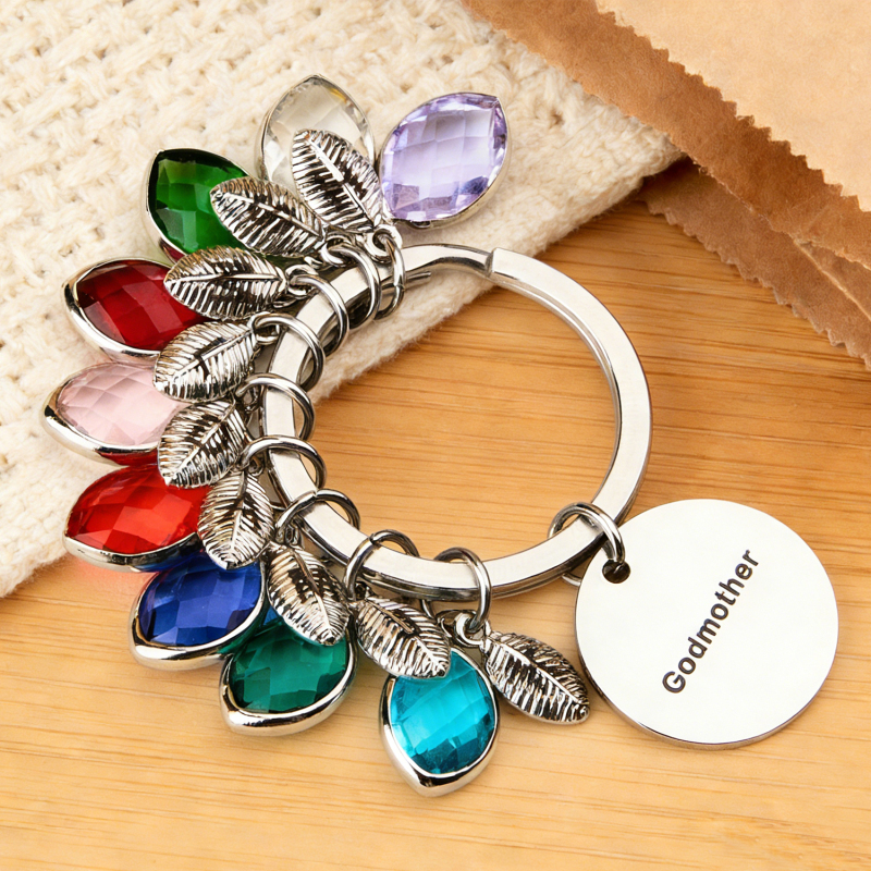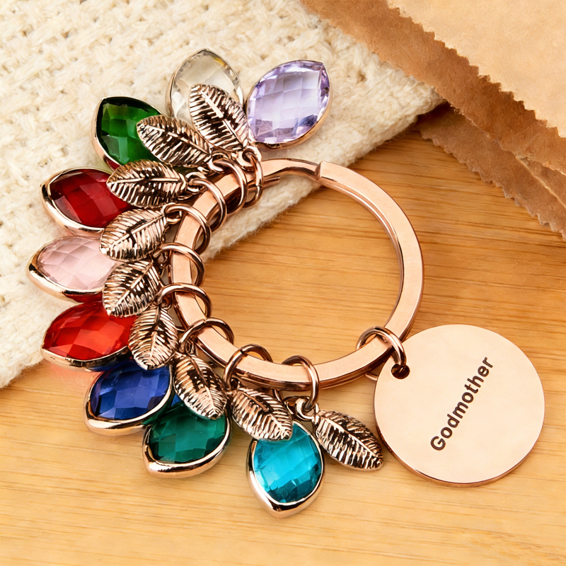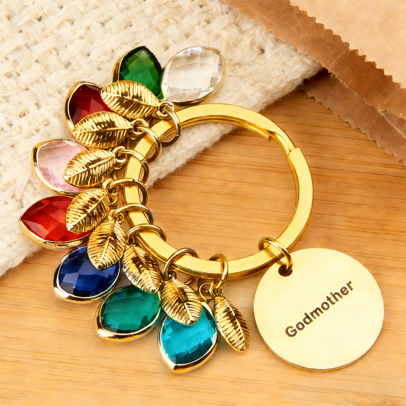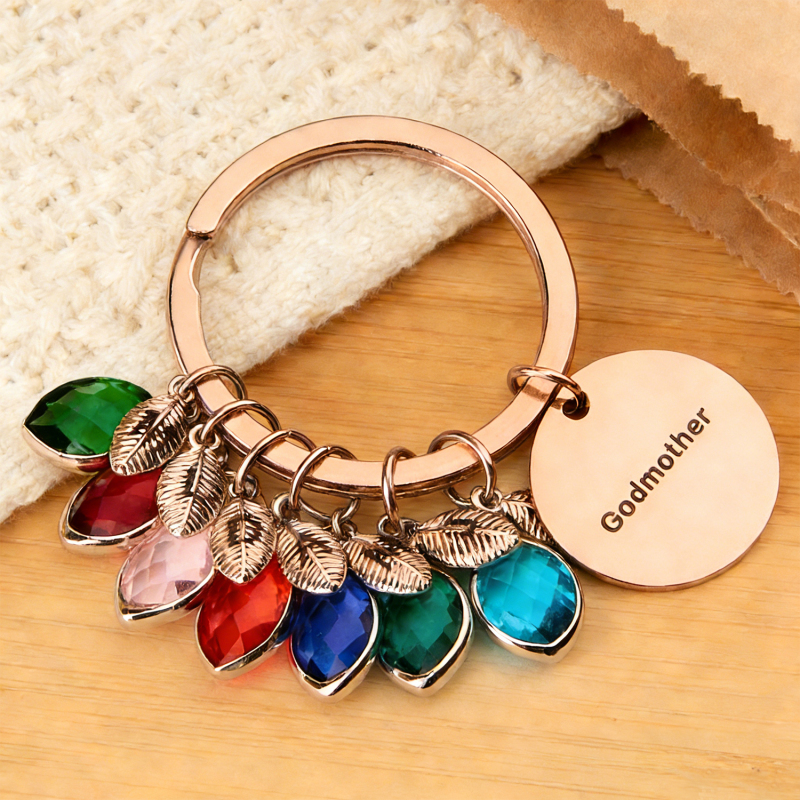 Porte-clés Personnalisé Avec Nom, Pierre De Naissance Et Feuille - Cadeau Pour Marraine Ou Anniversaire