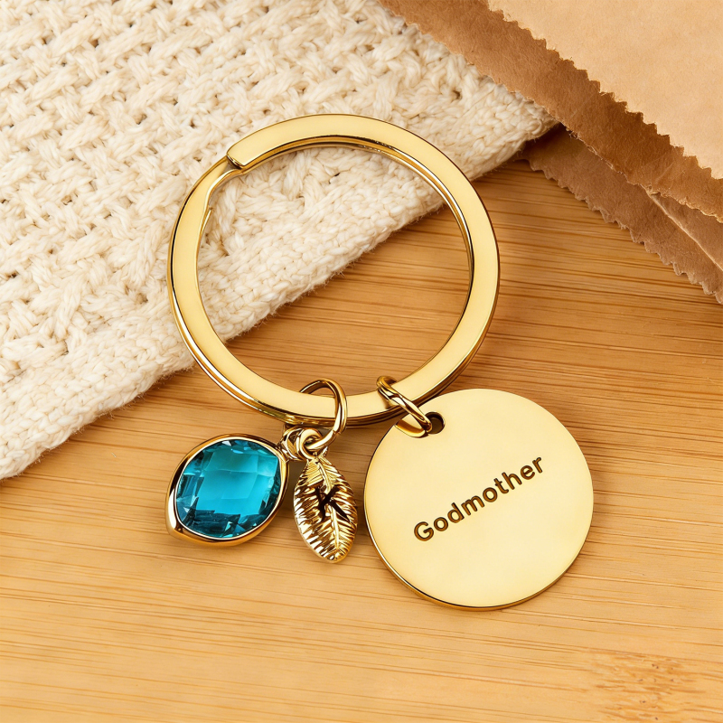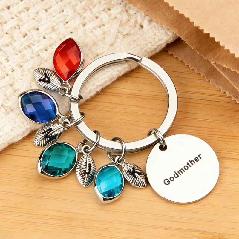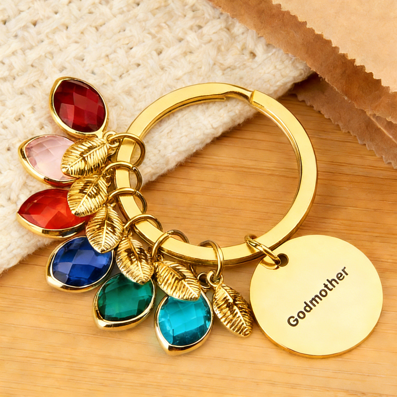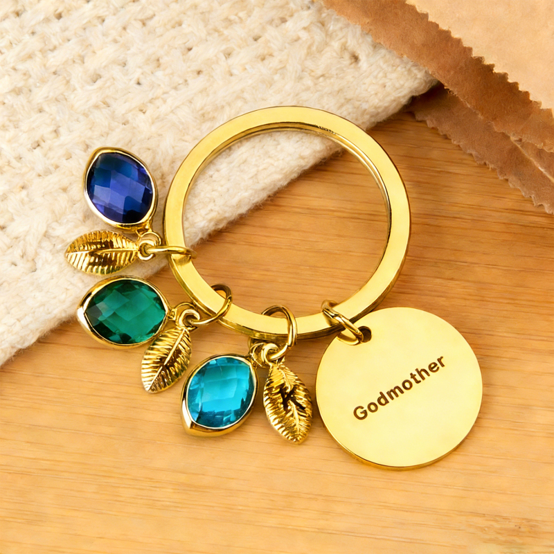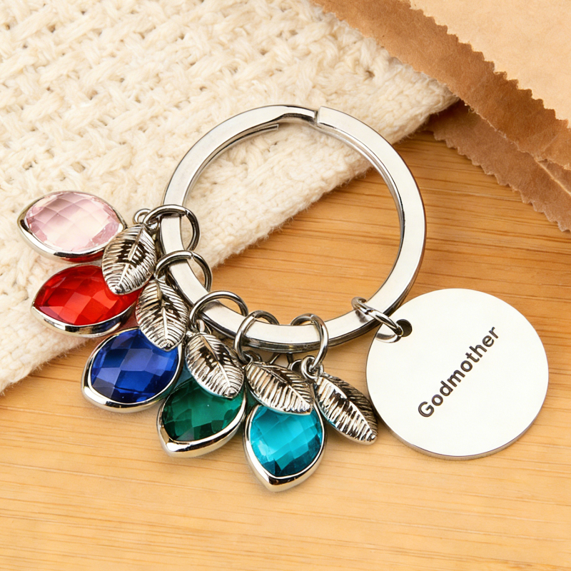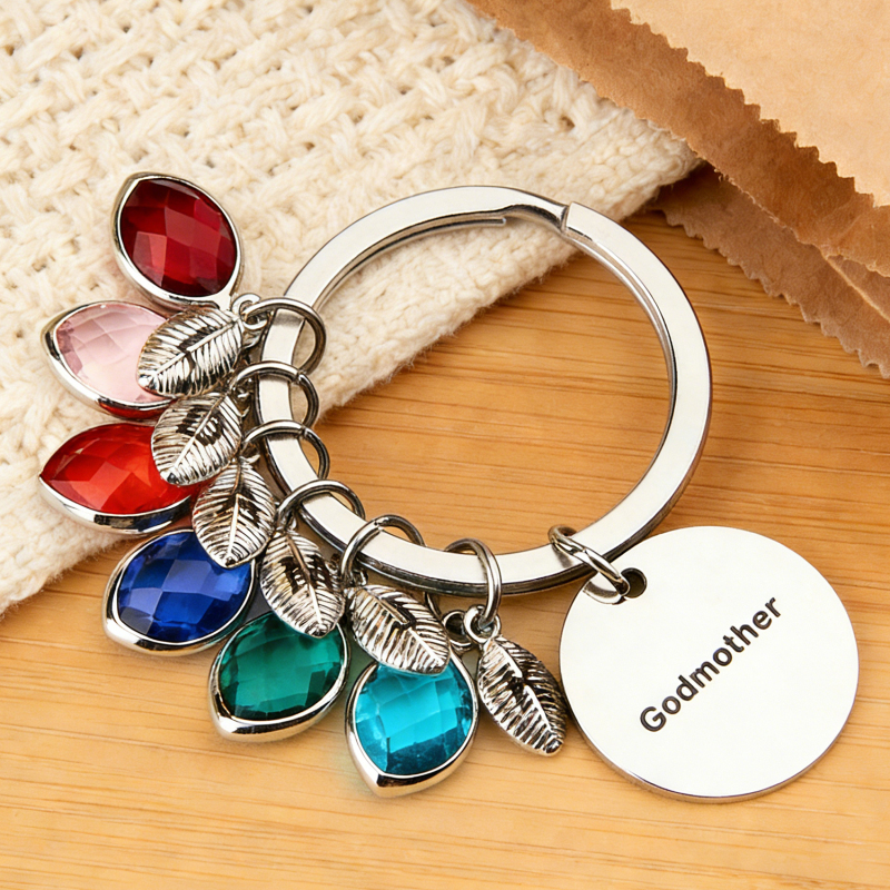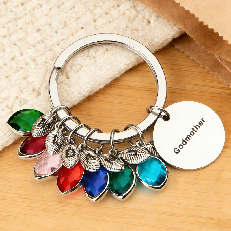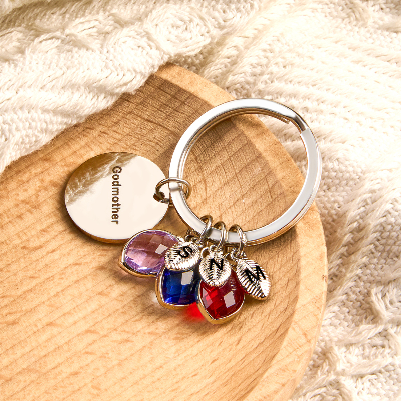 Porte-clés Personnalisé Avec Nom, Pierre De Naissance Et Feuille - Cadeau Pour Marraine Ou Anniversaire