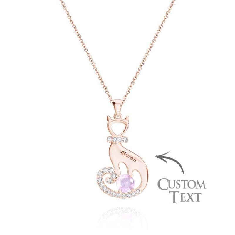 Joli Collier De Pierre De Naissance De Chat Avec Texte, Pendentif Unique En Zircon, Bijoux Cadeaux Pour Femmes
