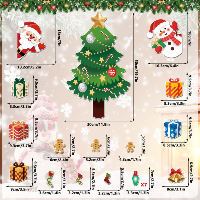 Sapin de Noël attrayant : En collant ces autocollants aux endroits indiqués, vous obtiendrez un joli sapin de Noël qui embellira votre garage.