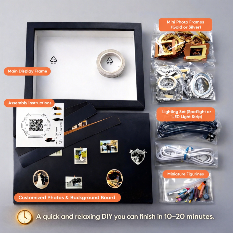 Ce cadre vitrine personnalisé est conçu avec soin comme un musée miniature de vos souvenirs partagés, rendant hommage à sa force, à son amour et aux moments qui ont façonné votre famille.