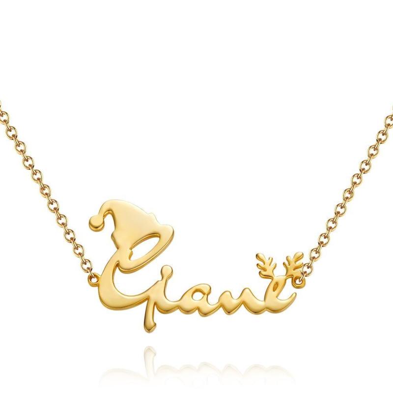 Collier Prenom Collier Prénom Avec Chapeau De No?l Et Bois Pour Cadeaux De No?l Cadeau Parfait Pour Elle En Argent Plaqué Or Rose