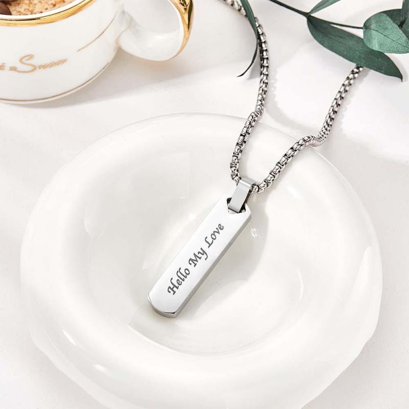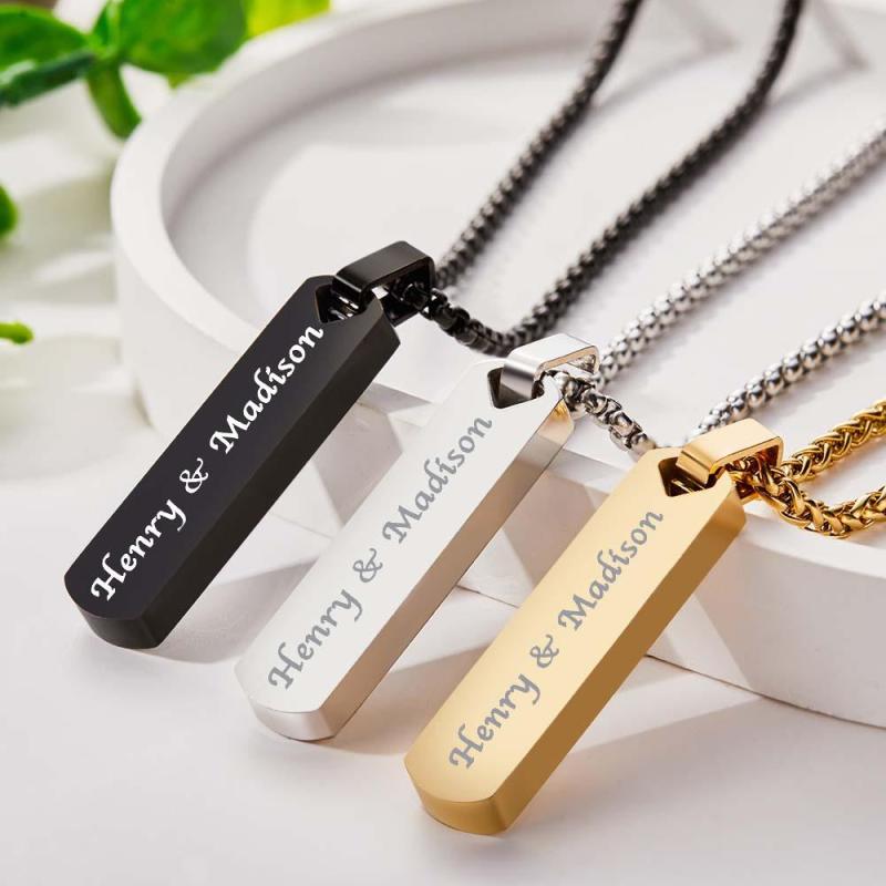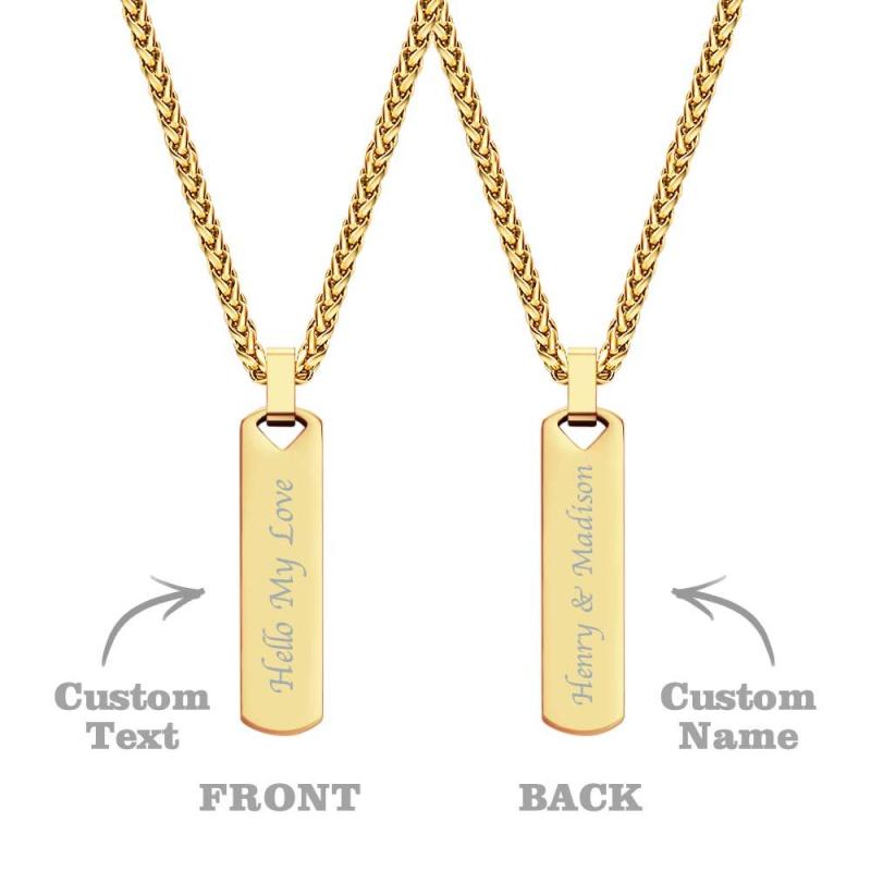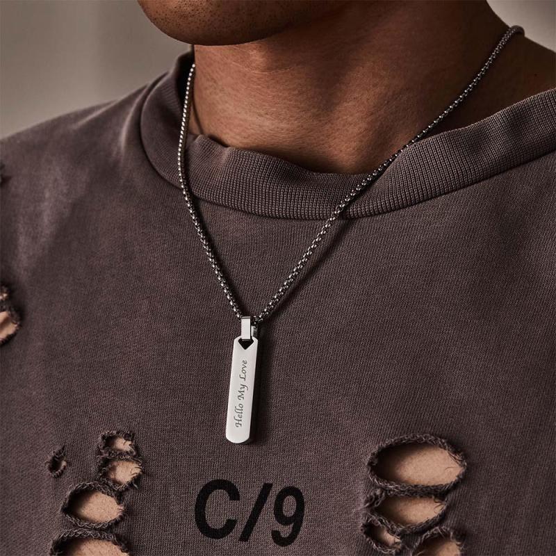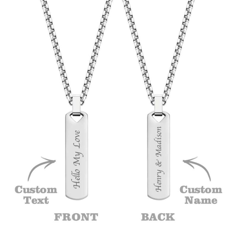 Offrez à un homme spécial dans votre vie un cadeau unique et significatif avec notre collier gravé pour homme. Cette pièce de haute qualité est fabriquée avec les meilleurs matériaux et le souci du détail, avec des caractéristiques hypoallergéniques et anti-ternissement pour une tenue durable. Personnalisez-le avec des gravures personnalisées des deux côtés pour créer un cadeau vraiment spécial pour les maris, les petits amis et les papas qu'ils chériront pour les années à venir.