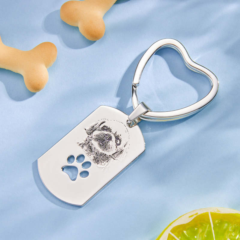 Porte-clés commémoratif pour animal de compagnie avec la photo, non seulement peut mettre la photo de votre animal de compagnie aimé dessus, mais peut également ajouter vos propres mots au verso, normalement graver avec le nom de quelqu'un que vous aimez, une date dont vous aimeriez vous souvenir , et des messages importants vous accompagneront partout, comme une citation de motivation et des mots de promesse, seront un cadeau unique pour vos familles et vos amis à Noël, un anniversaire, un anniversaire ou Thanksgiving pour chérir vos proches.