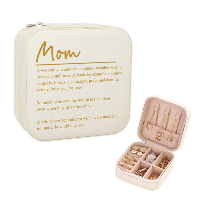 Surprenez votre maman avec cette boîte à bijoux personnalisée ! Personnalisez-le avec son nom et montrez-lui à quel point elle compte pour vous. Parfait pour garder tous ses bijoux organisés et rangés avec style !