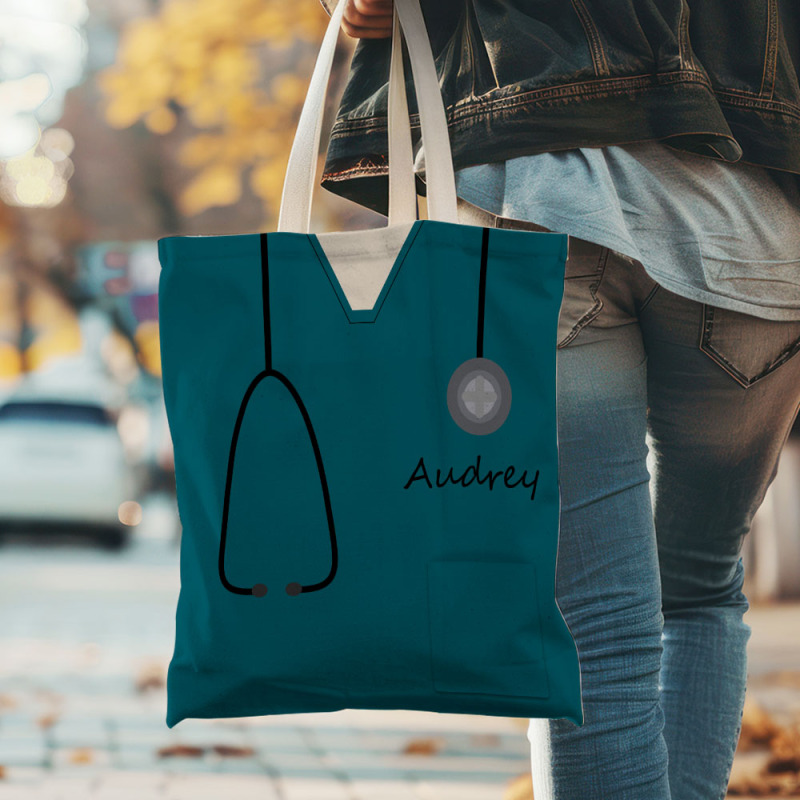 Tote Bag Nom Personnalisé Infirmière Medical Scrubs Sarcelle