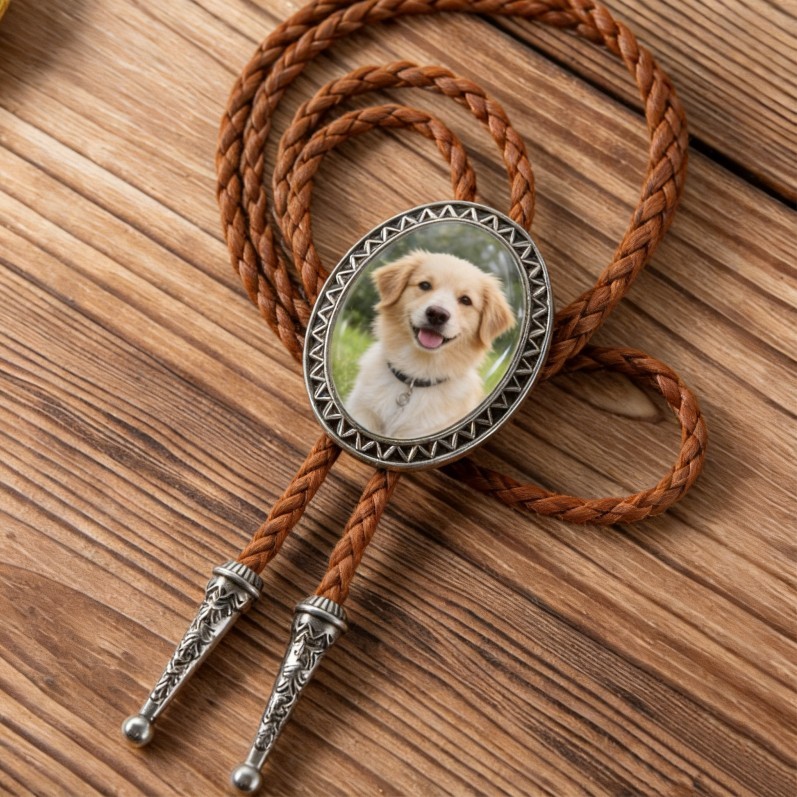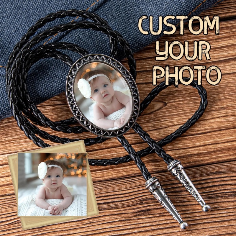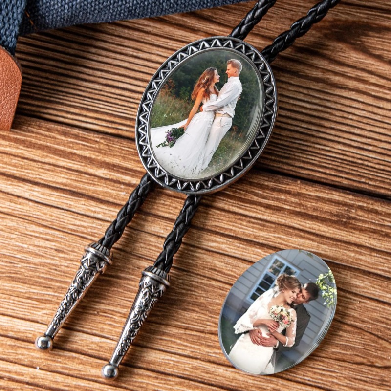 Transformez un souvenir précieux en un accessoire intemporel. Cette cravate bolo personnalisée avec photo met en valeur la photo de votre choix, élégamment intégrée à un design classique de cravate bolo et dotée d'un cordon en cuir véritable. Alliant style western et récit personnel, c'est plus qu'une cravate : c'est un souvenir à porter.Idéale pour les mariages, les anniversaires ou toute autre célébration importante, cette cravate bolo personnalisée vous permet de garder un moment précieux près de votre cœur. Qu'il soit porté par le marié, offert à son/sa partenaire ou conservé comme accessoire symbolique, il ajoute une dimension émotionnelle à chaque occasion.Confectionné avec le souci du détail, le cordon en cuir ajustable assure un confort optimal, tandis que la photo personnalisée au centre rend chaque pièce véritablement unique.