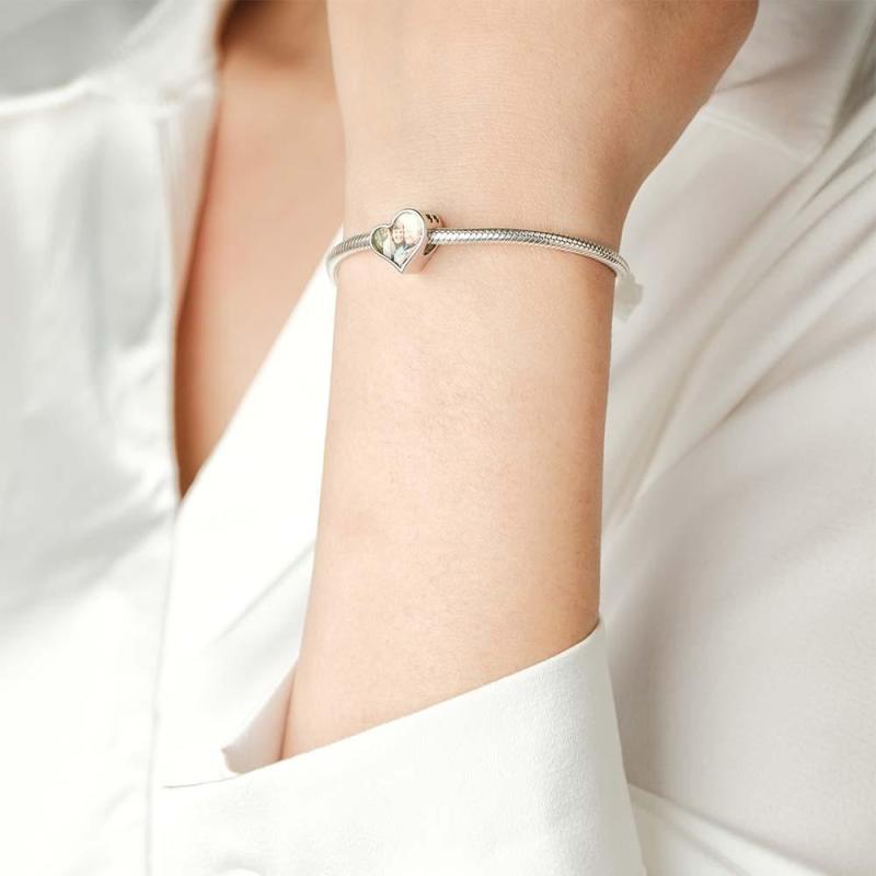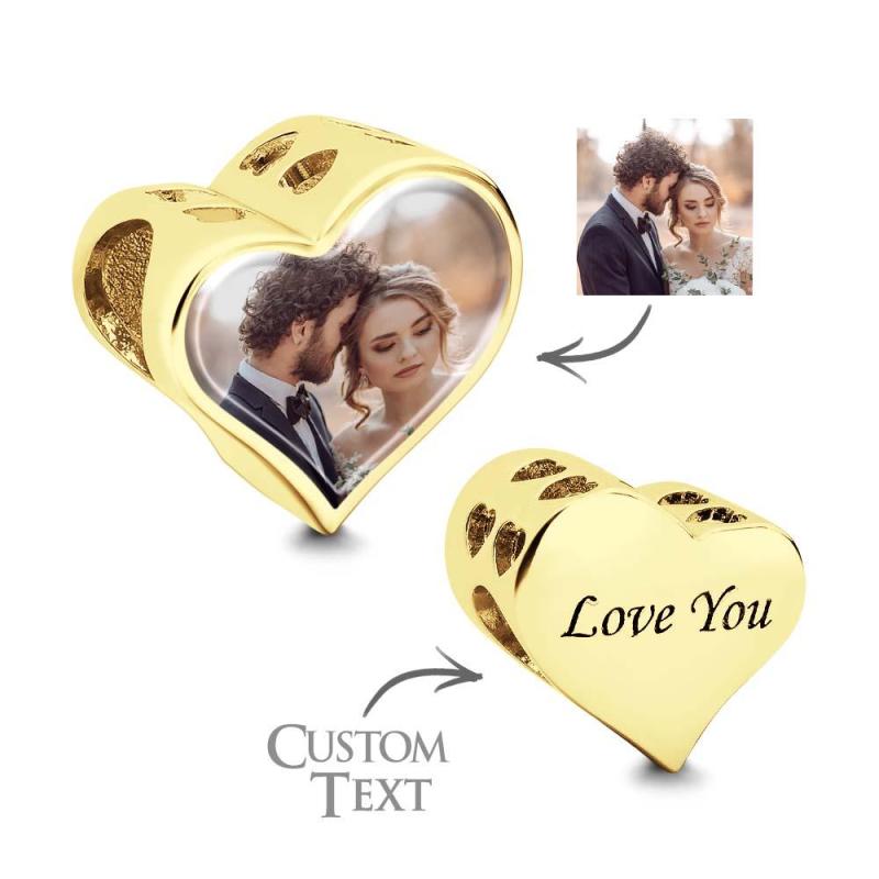Breloque Photo Personnalisée En Forme De Cœur, Cadeau Gravé Pour Femmes Et Filles