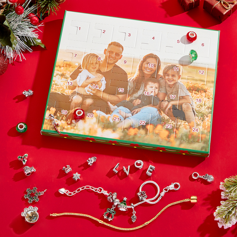 Bijoux Photo Personnalisés Calendrier De L'avent Breloque Photo Surprise De Noël Bracelet Boîte Aveugle 24 Calendrier Compte À Rebours Boîte Cadeau Bracelet Pour La Famille