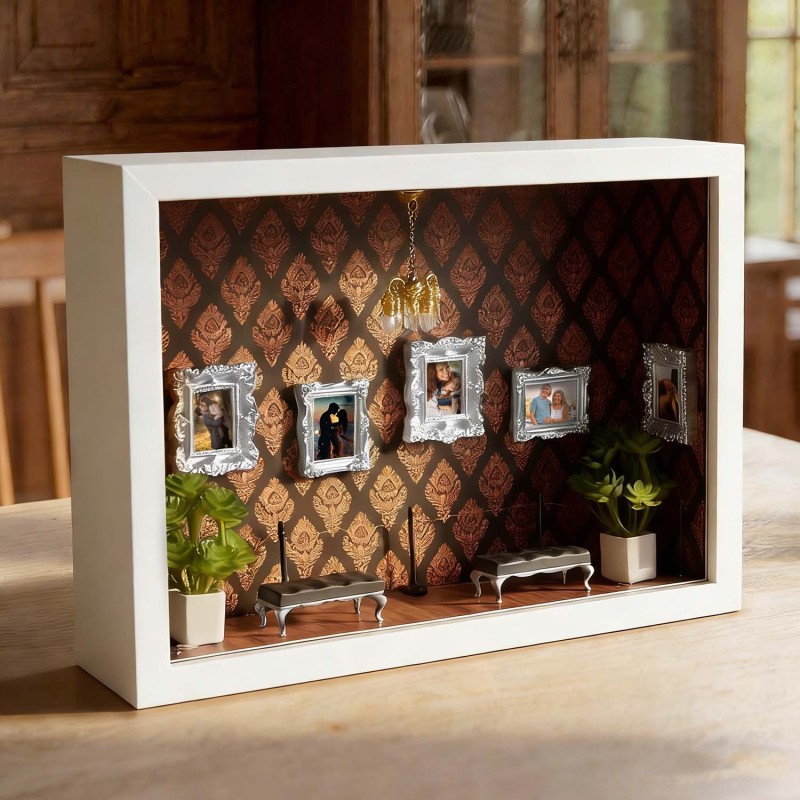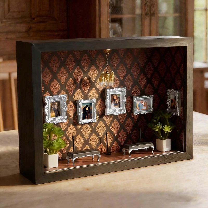Chaque coffret est soigneusement agencé avec des éléments symboliques qui reflètent votre histoire familiale et personnelle. Que vous l'offriez en cadeau ou que vous l'exposiez chez vous, ce coffret raconte une histoire forte : la vôtre.