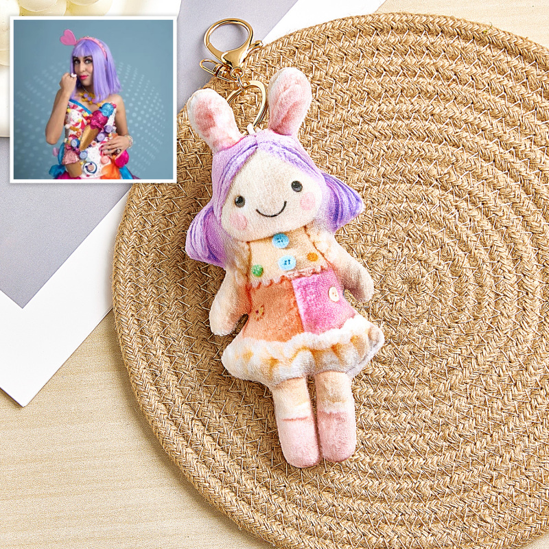 Emportez votre « Mini Moi » partout et laissez-le vous apporter le sourire ! Nous nous efforçons de capturer vos traits uniques et de créer un porte-clés en peluche personnalisé, rien que pour vous.