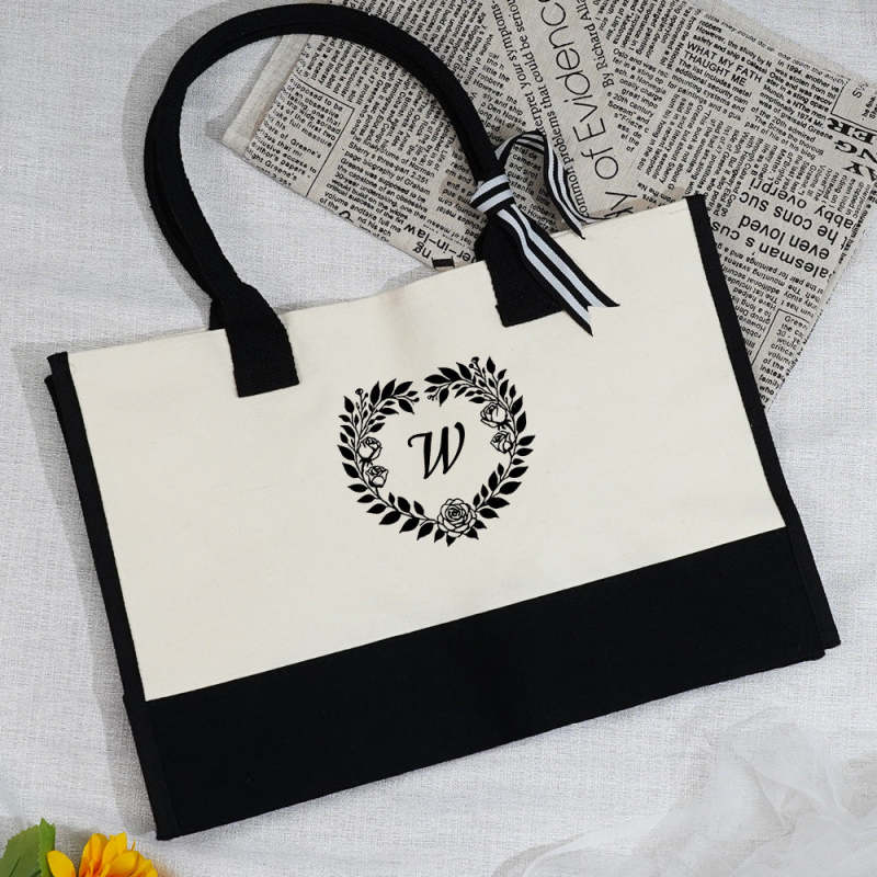 Sac Fourre-tout En Toile Avec Initiale De Couronne Personnalisée, Sac Fourre-tout De Grande Capacité, Cadeau Pour Femmes