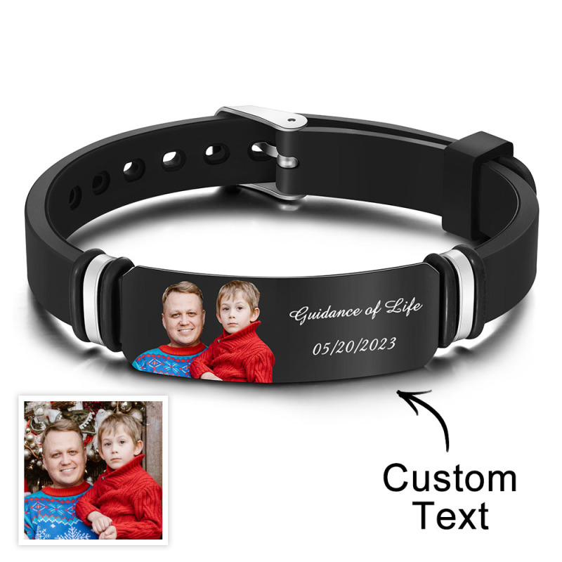 Rendez la journée de votre bien-aimé vraiment spéciale avec notre bracelet noir gravé avec photo personnalisé pour hommes. Ce n'est pas seulement un accessoire ; c'est un témoignage portable d'amour et de moments précieux qui seront précieux toute une vie.