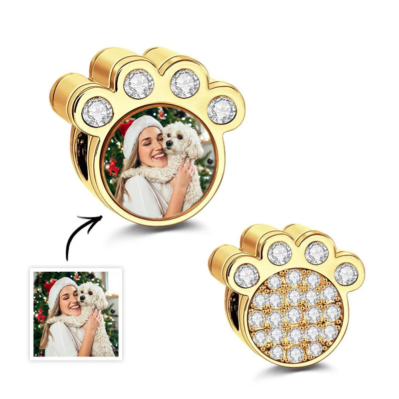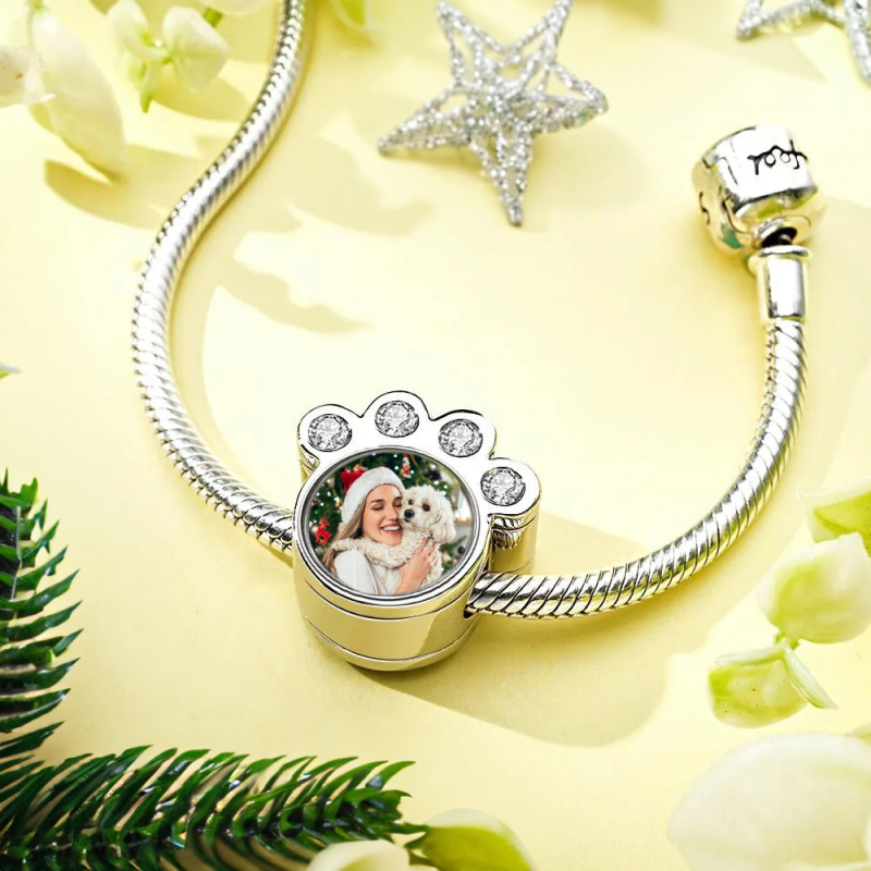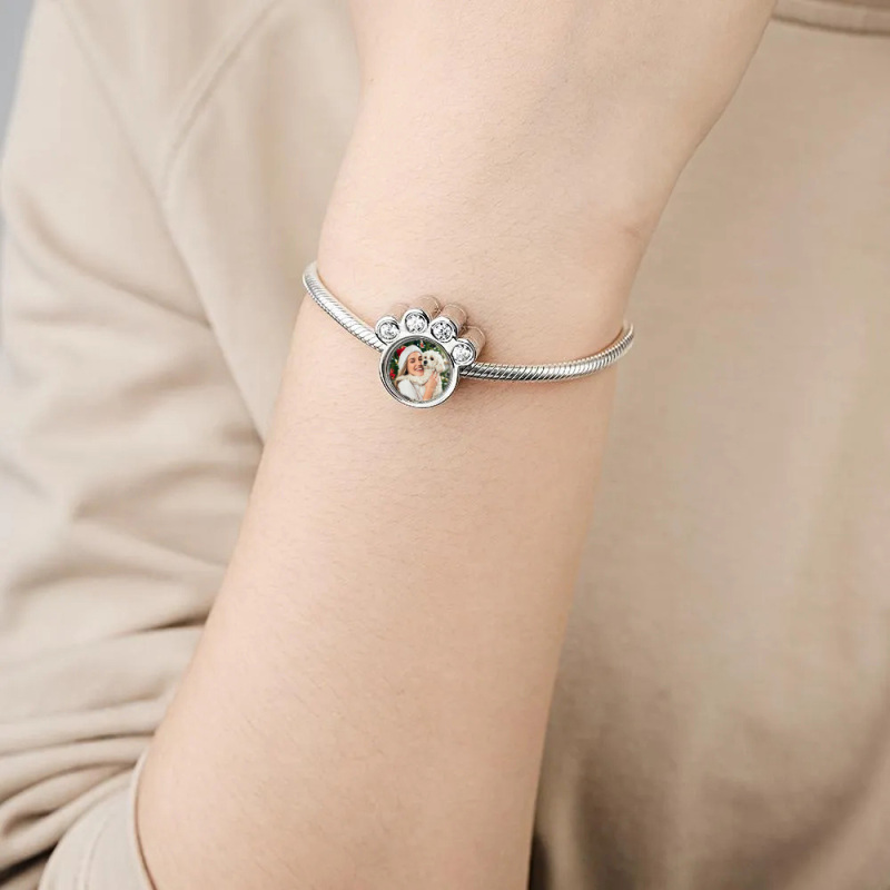 Breloque Photo Personnalisée En Forme De Patte De Bracelet, Breloque Photo Personnalisée, Perle Photo Mignonne Pour Animal De Compagnie, Convient Au Bracelet, Collier, Cadeau D'anniversaire Pour Noël