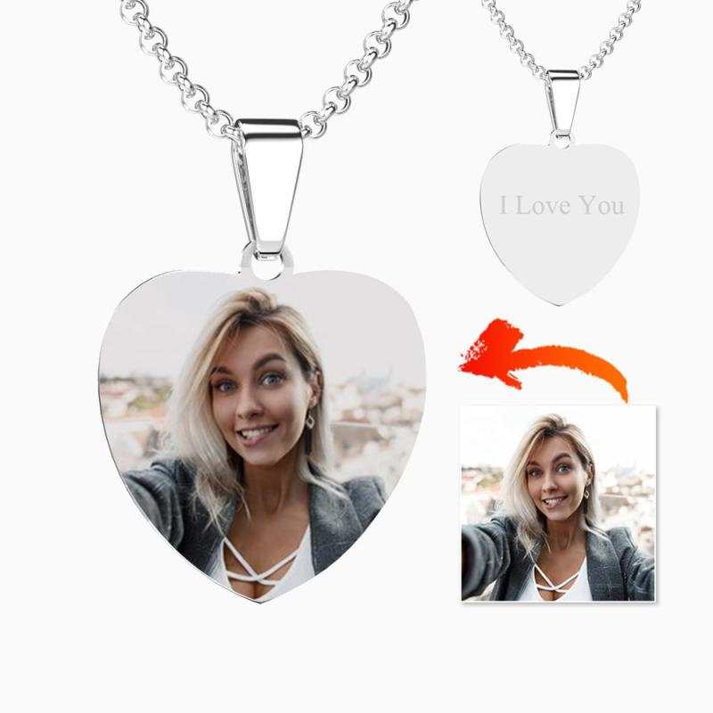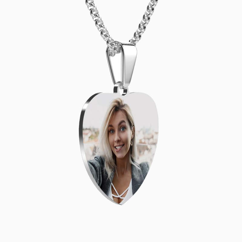 Collier Photo Tag Coeur Avec Gravure En Acier Inoxydable Photo Colliers