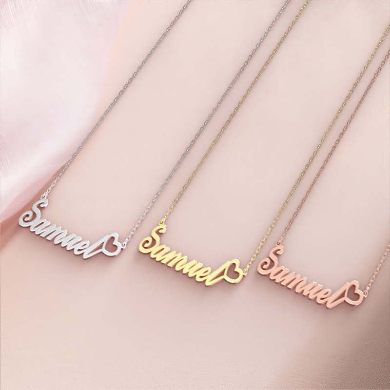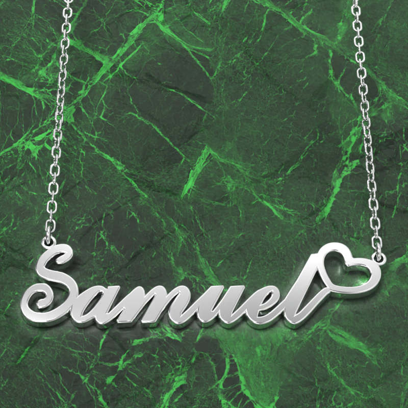 Samuel Nom Collier Argent anti-oxydation Collier Personnalisé Avec Coeur, Cadeaux Personnalisés Pour Elle