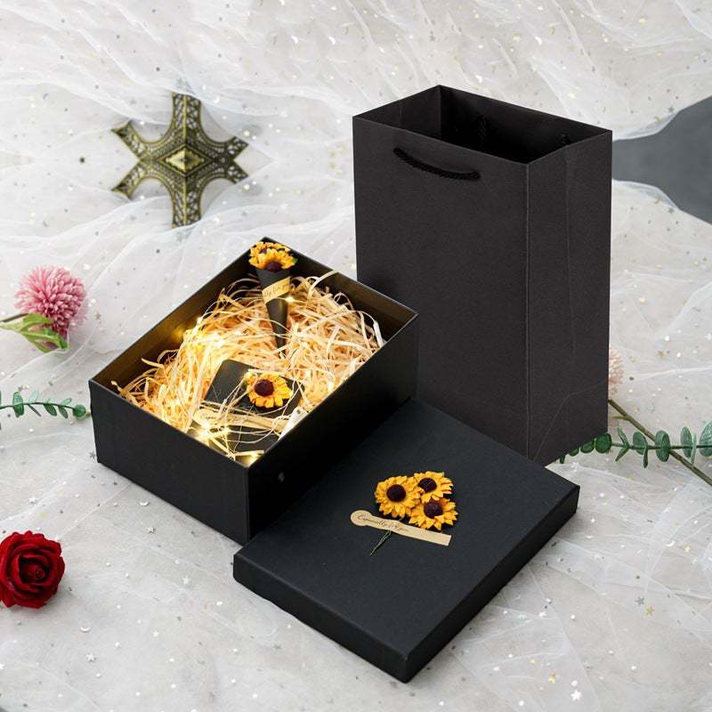 L'emballage unique peut donner à votre cadeau des points supplémentaires et vous serez ému avant d'ouvrir le cadeau. Il y a 6 types différents de fleurs fraîches sur cette boîte cadeau, il y a du raphia et des cartes de vœux à l'intérieur, vous pouvez y écrire ce que vous voulez dire. Il convient de noter que vous devez poster les petites fleurs manuellement après réception de la marchandise. Il existe différents modèles et tailles pour répondre à vos besoins. Il n'y a qu'un seul coffret cadeau entre vous et un bon cadeau.