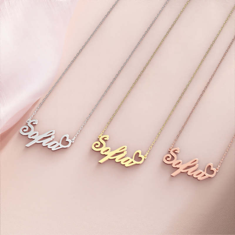 Sofia Nom Collier Argent anti-oxydation Collier Personnalisé Avec Coeur, Cadeaux Personnalisés Pour Elle