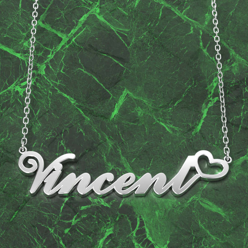 Vincent Nom Collier Argent anti-oxydation Collier Personnalisé Avec Coeur, Cadeaux Personnalisés Pour Elle