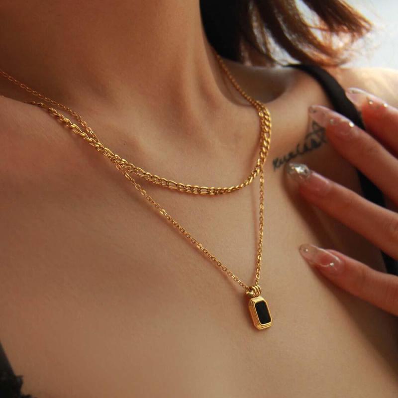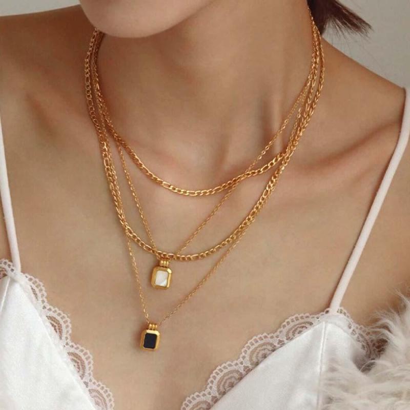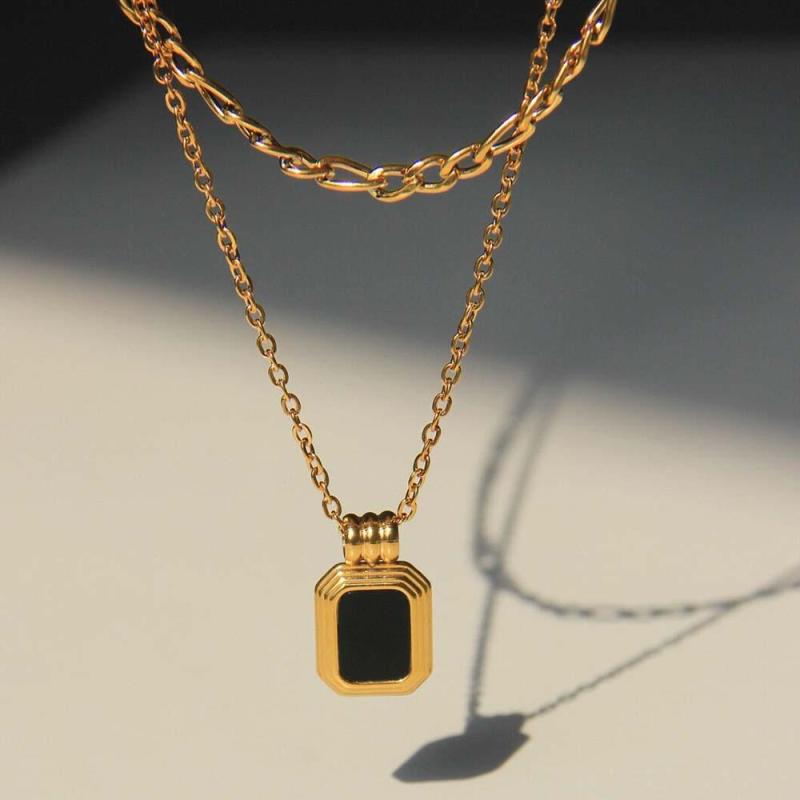 Ensemble De Collier Double Couche En Or Vintage, Collier Noir/blanc, Collier En Nacre
