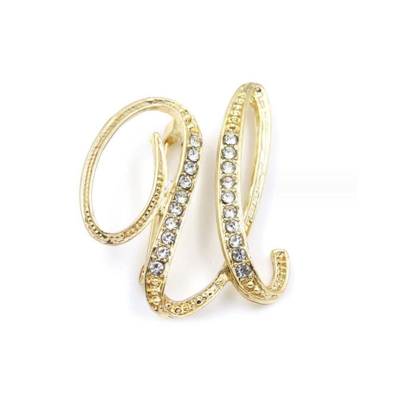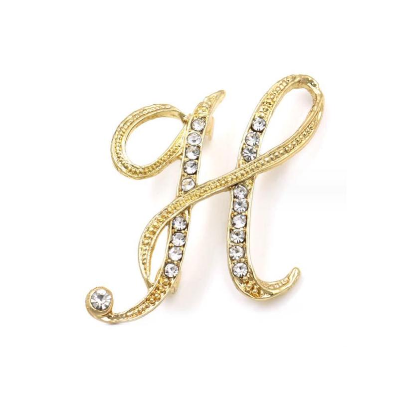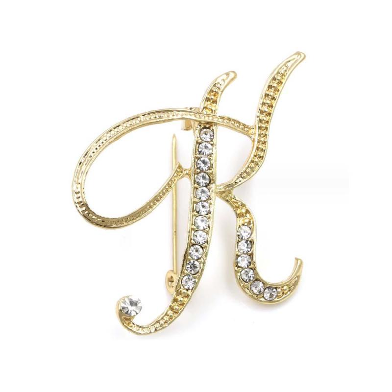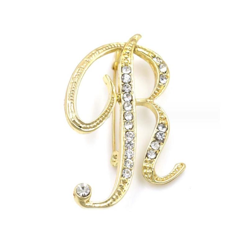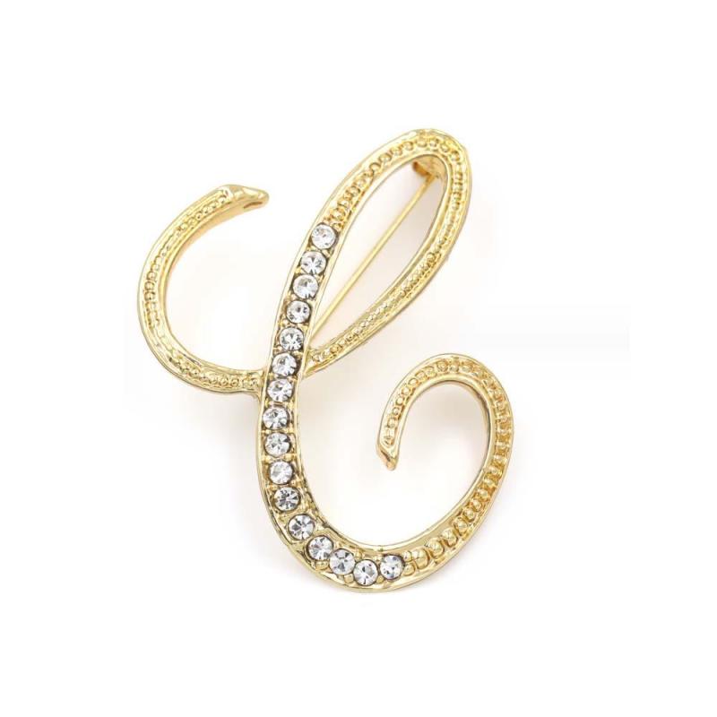 A-z 26 Lettres Broches Broches Argent/or Plaqué Broches En Métal Broches-pince Initiale En Cristal Clair