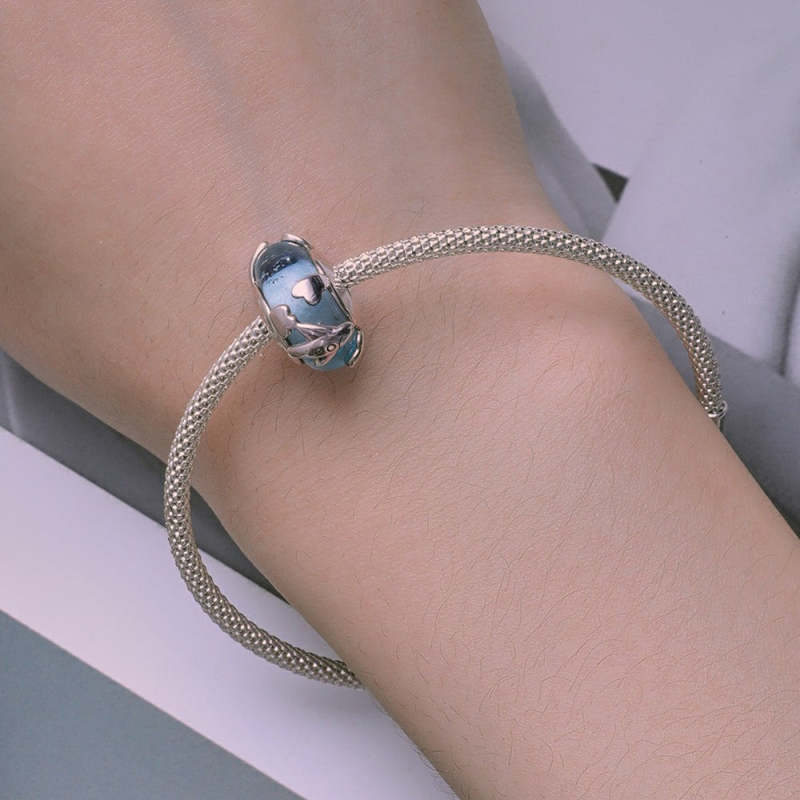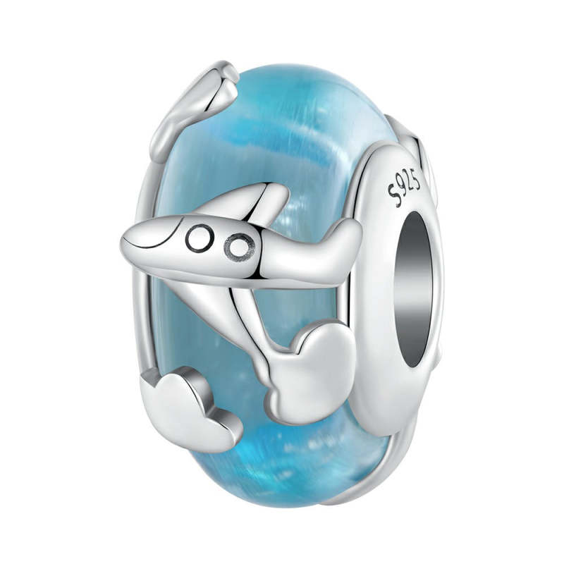 Breloque En Verre Bleu En Verre D'avion, Argent