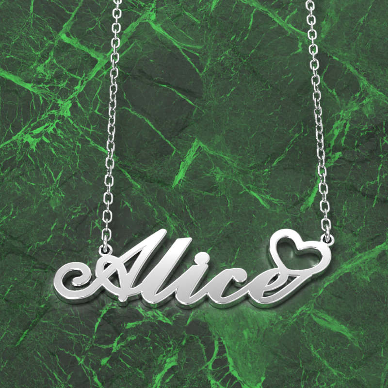 Alice Nom Collier Argent anti-oxydation Collier Personnalisé Avec Coeur, Cadeaux Personnalisés Pour Elle
