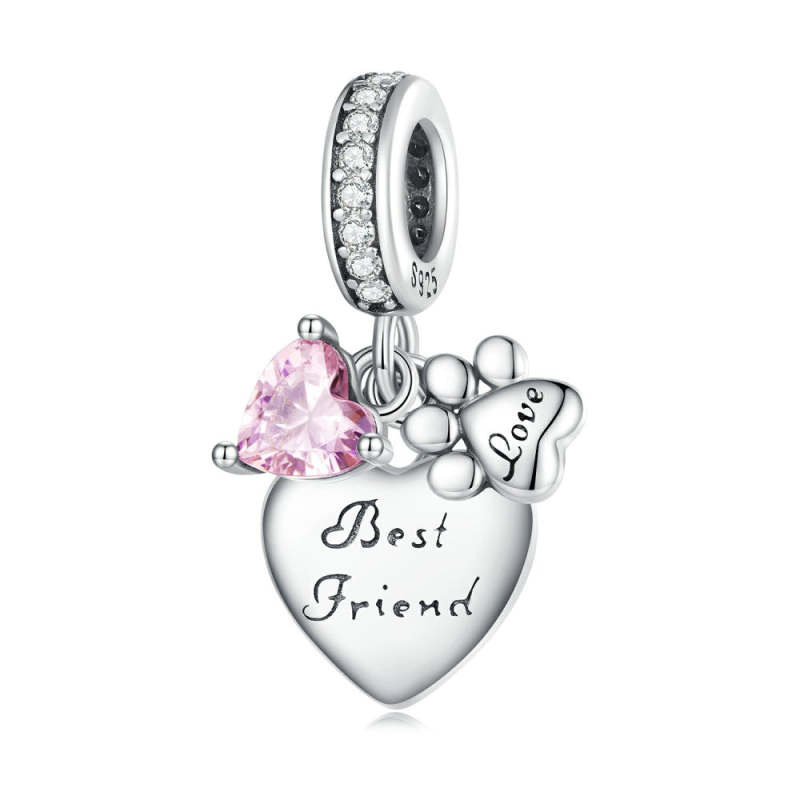 Breloque Pendentif En Forme De Patte De Cœur Rose, Meilleur Ami, Cadeaux En Argent Pour Les Amoureux Des Animaux De Compagnie