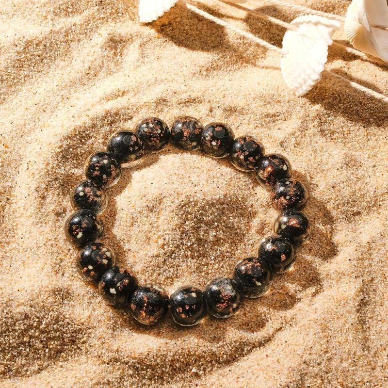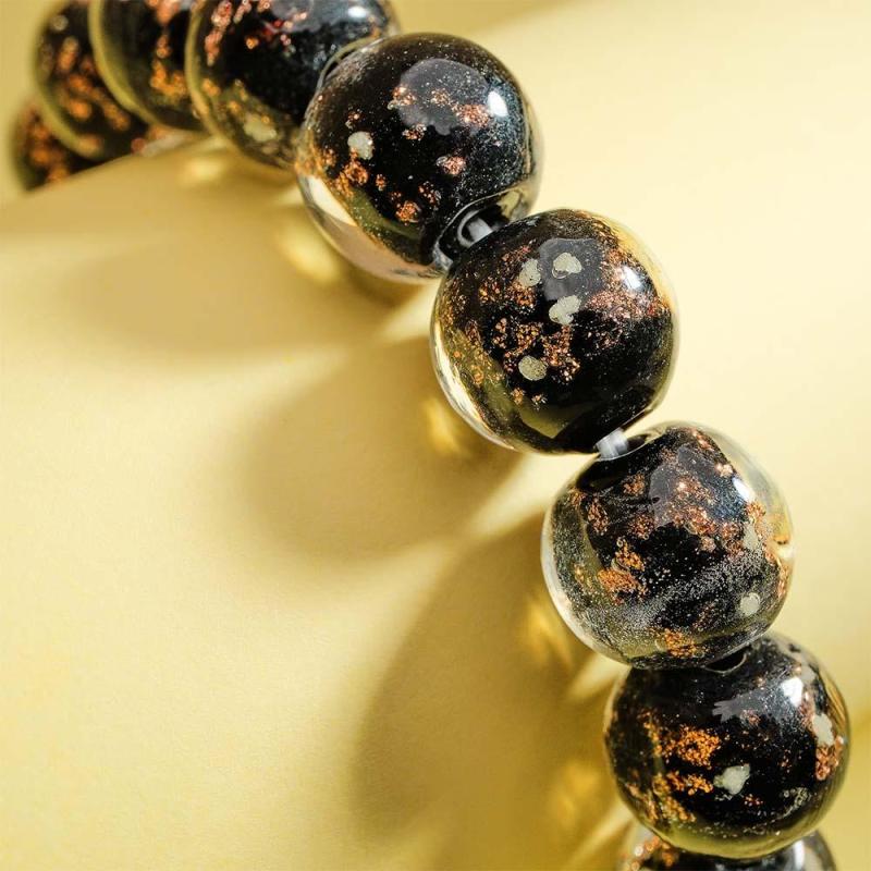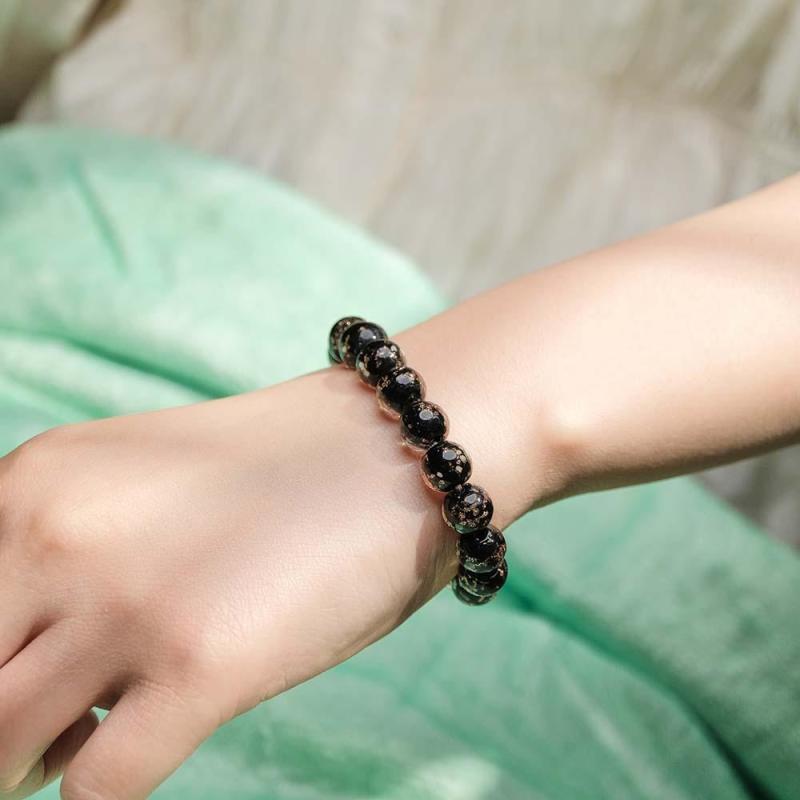 Bracelet De Perles Extensibles En Verre Luciole Noir, Brille Dans Le Noir, Bracelet Lumineux