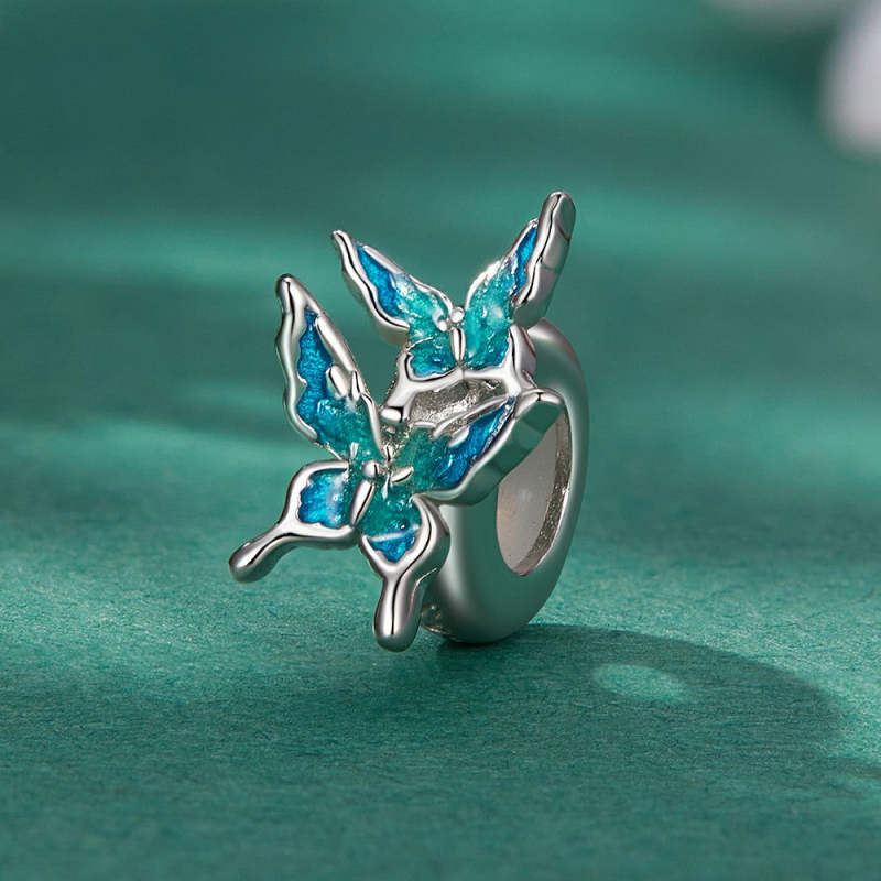 Breloque Bouchon Papillons Bleus, Breloque Espaceur Argent