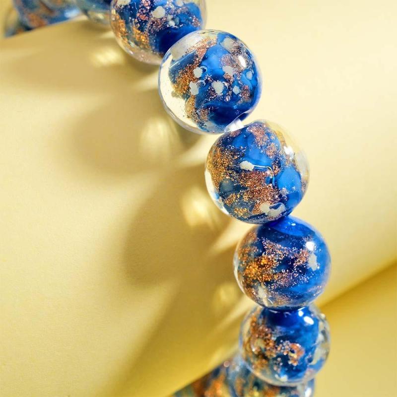Bracelet De Perles Extensibles En Verre Luciole Bleu Céruléen Qui Brille Dans Le Noir Bracelet Lumineux
