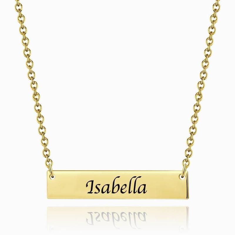 Collier Bar Gravé Pour Enfant Plaqué Or 14k