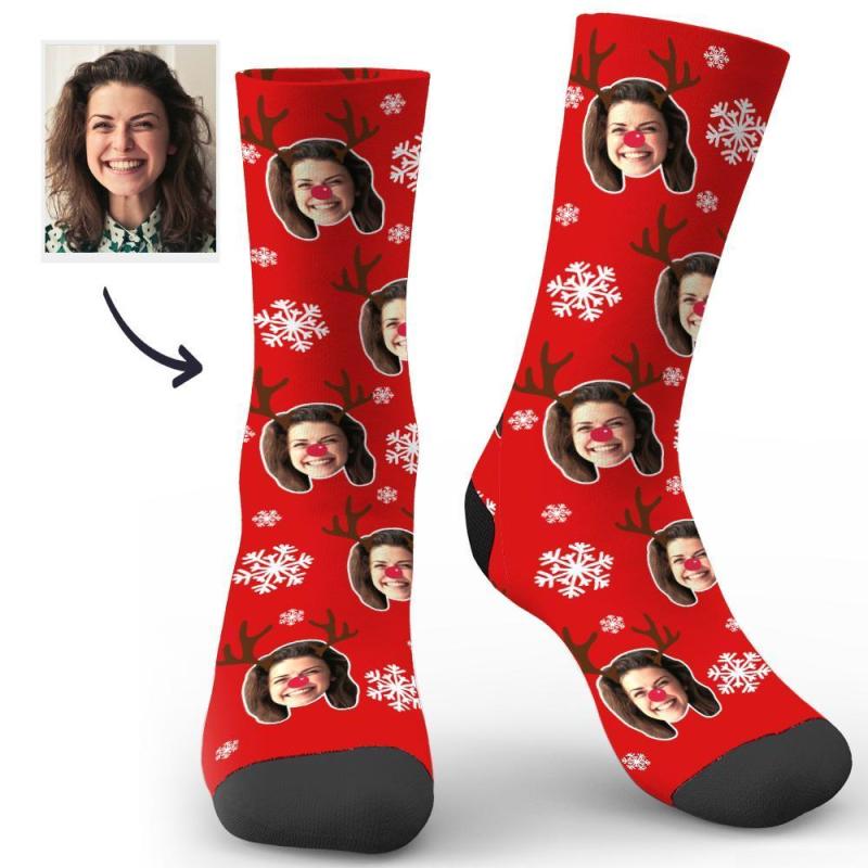 No?l Chaussettes Personnalisées En Photo Avec Antler Mignon