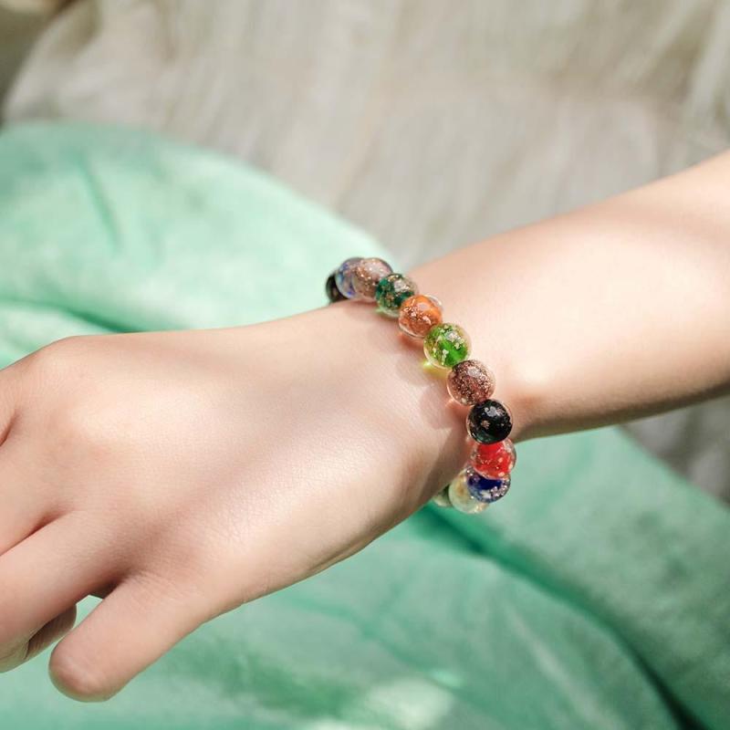 Bracelet De Perles Extensibles En Verre Luciole Coloré, Brille Dans Le Noir, Lumineux
