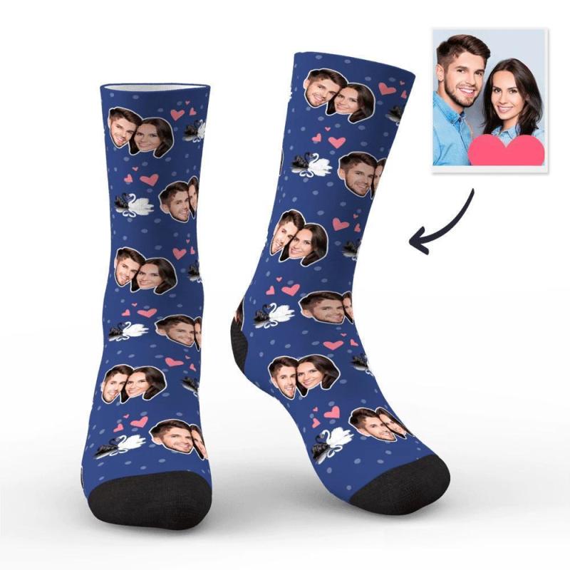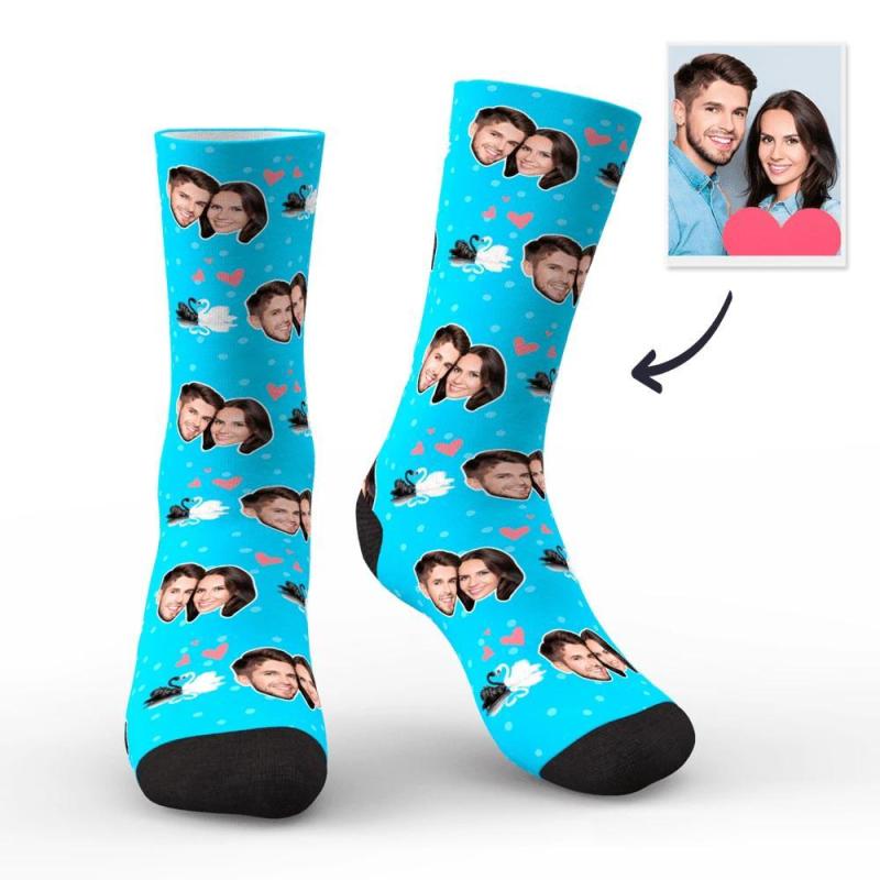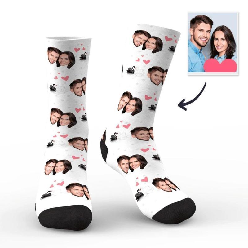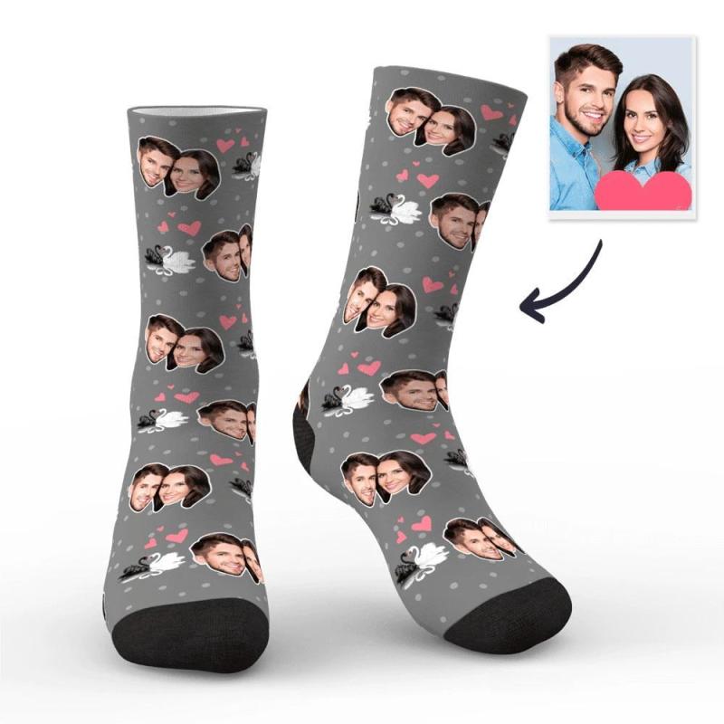 Chaussettes Couple Personnalisé Cygne Et Visage