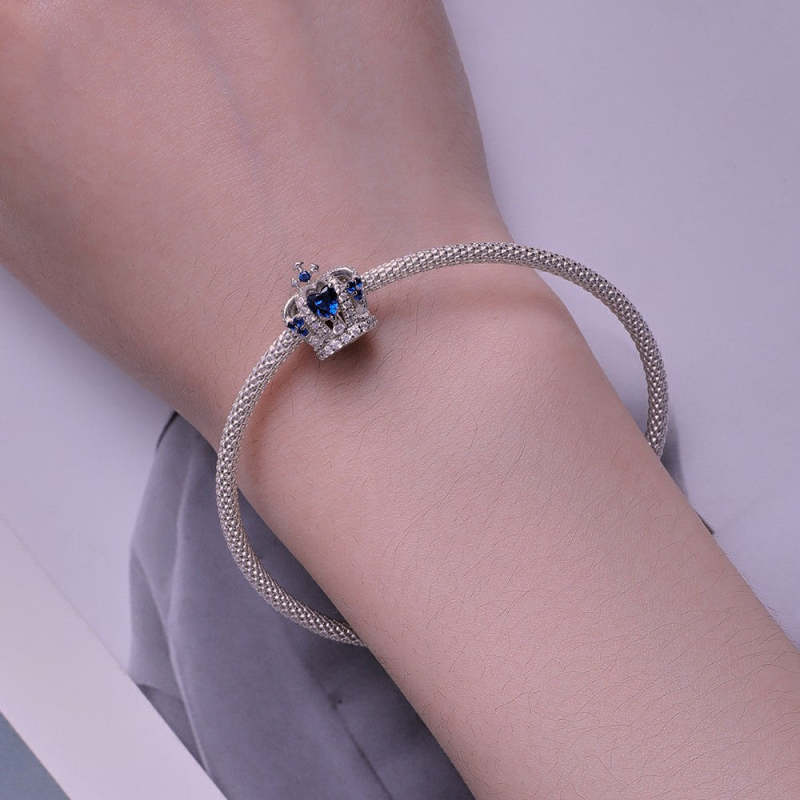 Breloque Couronne Bleu Zircon Argent
