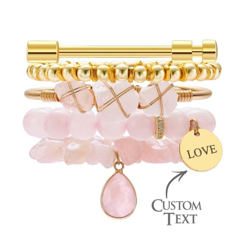 Bracelet Gravé Avec Pierre De Naissance Personnalisée, Cristal Rose, Style Bohème, Cadeau