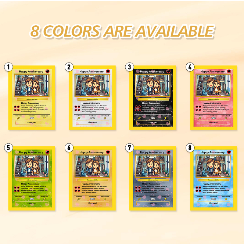 Donnez vie à votre photo préférée dans un style cartoon amusant. Cette carte personnalisée pour couple est scellée comme un objet de collection et comprend votre photo et un message touchant. Idéale pour les anniversaires, la Saint-Valentin ou comme cadeau surprise.