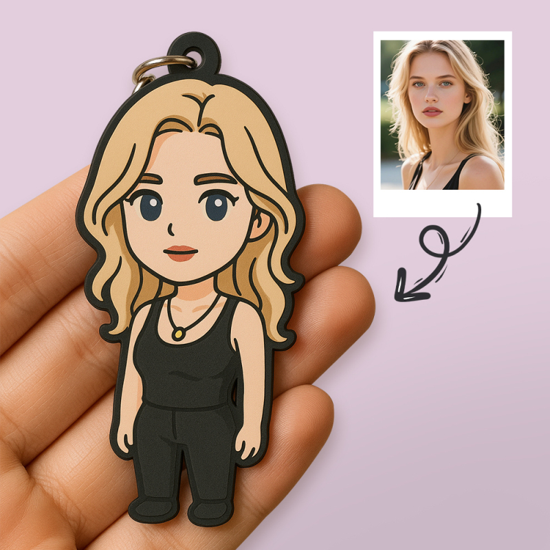 Porte-clés personnalisé avec photo de dessin animéTransformez votre photo en un adorable personnage